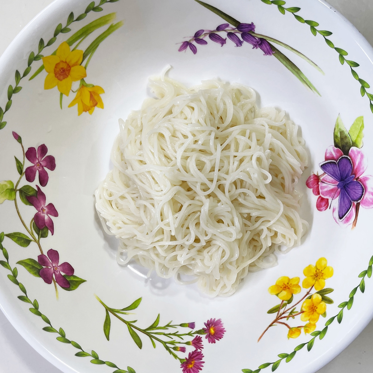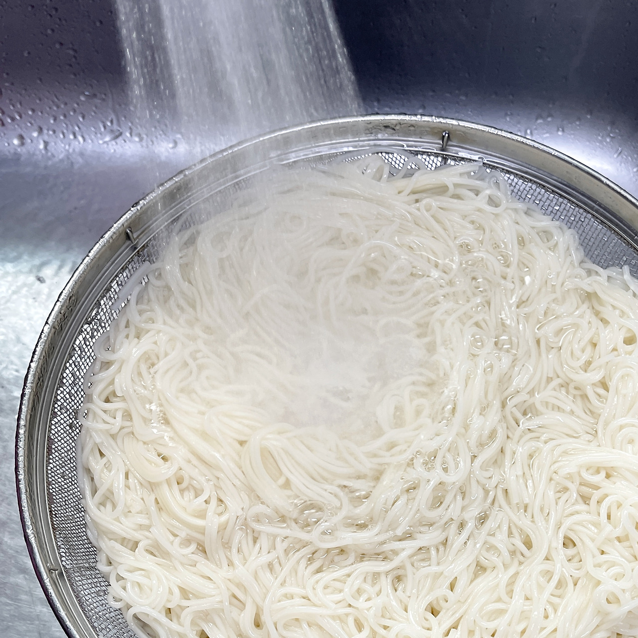 4. 국수를 찬물에 잘 씻어서 그릇에 담아줍니다.