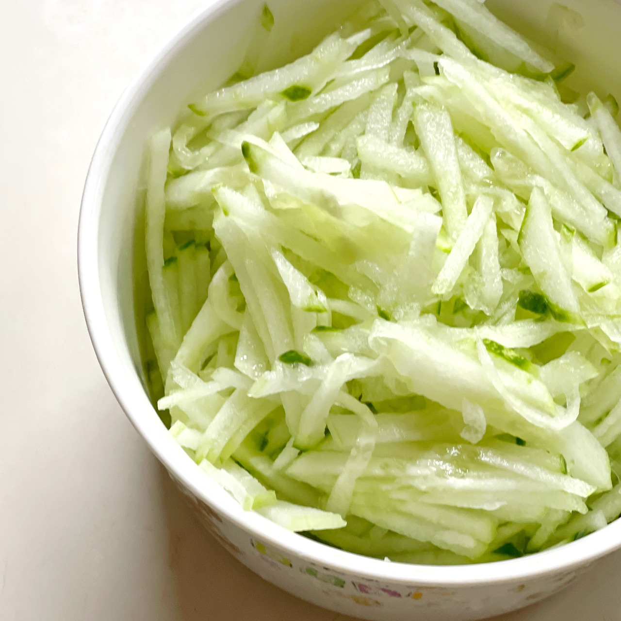 1. 먼저 국수를 삶을 물을 올려 두고 오이를 깨끗이 씻어서 채를 썰어 줍니다.