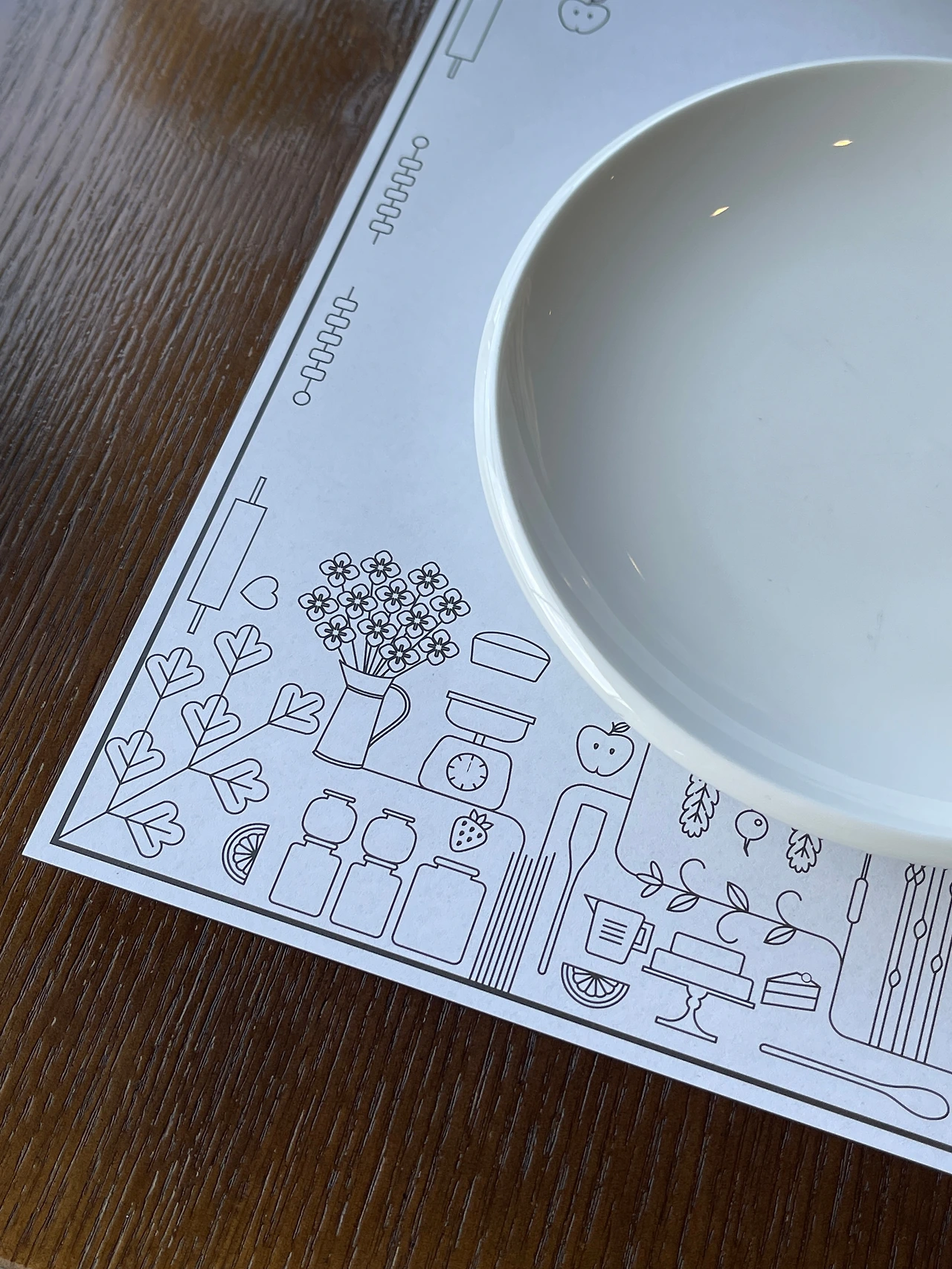 자리에 앉아서 요리를 주문하니까 테이블 세팅을 해줍니다. 오랜 시간을 머금은 갈색 테이블에 흰색으로 세팅이 됩니다. 와인병을 담은 사진에서 대비를 살렸으므로 동일하게 대비를 강조하려고 생각합니다. 이때 '일상을 예술작품으로 만들기'위한 두 번째 조건이 떠오릅니다. 주의 깊게 관찰했으면 '대상을 비교하고 느끼는 것'입니다. 이렇게 촬영하면 어떨지, 저렇게 촬영하면 어떨지 비교해봅니다. 또한 내가 오늘 봤던(촬영했던)것들과 어떤 동일한 느낌을 가지고 있는지, 아니면 색다른지 생각해 보는 것입니다. 이 장소에서 느낀 감정은 '대비'였으니까 그 부분을 비교해서 살려보려 합니다. 흰색 셋팅지와 접시를 촬영합니다.