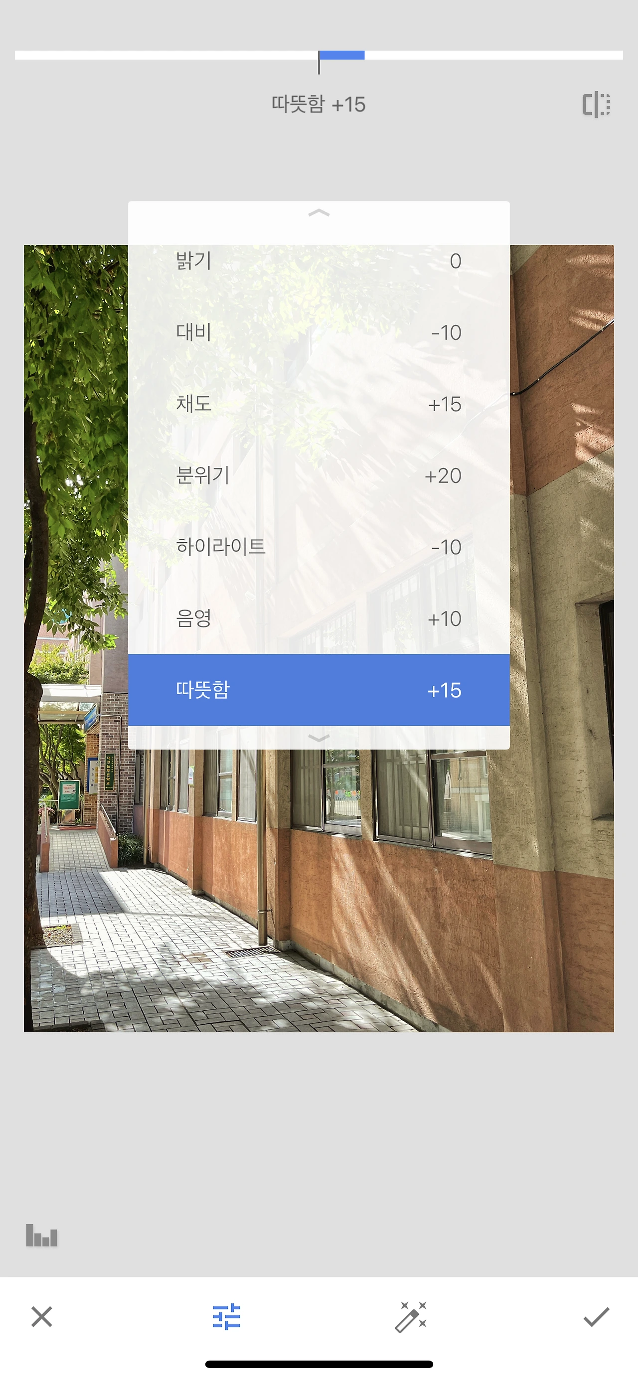 저는 주로 커브 메뉴를 가장 먼저 적용하는 것을 선호합니다. 그다음 기본 보정 메뉴로 들어가서, 대비와 하이라이트는 낮춰줍니다. 채도와 분위기, 따뜻함을 조금씩 올립니다. 색이 많이 살아나고 빛과 그림자의 경계도 확실해집니다.