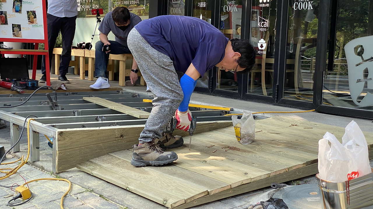 오늘은 그런 상점들을 대상으로 경사로를 설치한 날이다.