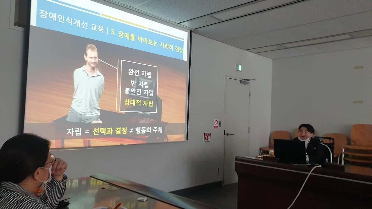 코로나19 이후 첫 오프라인 장애인식개선 교육. 성남시 지속가능발전협의회에서 장애인 이동권 모니터링 활동을 위한 사전교육을 요청했다.
