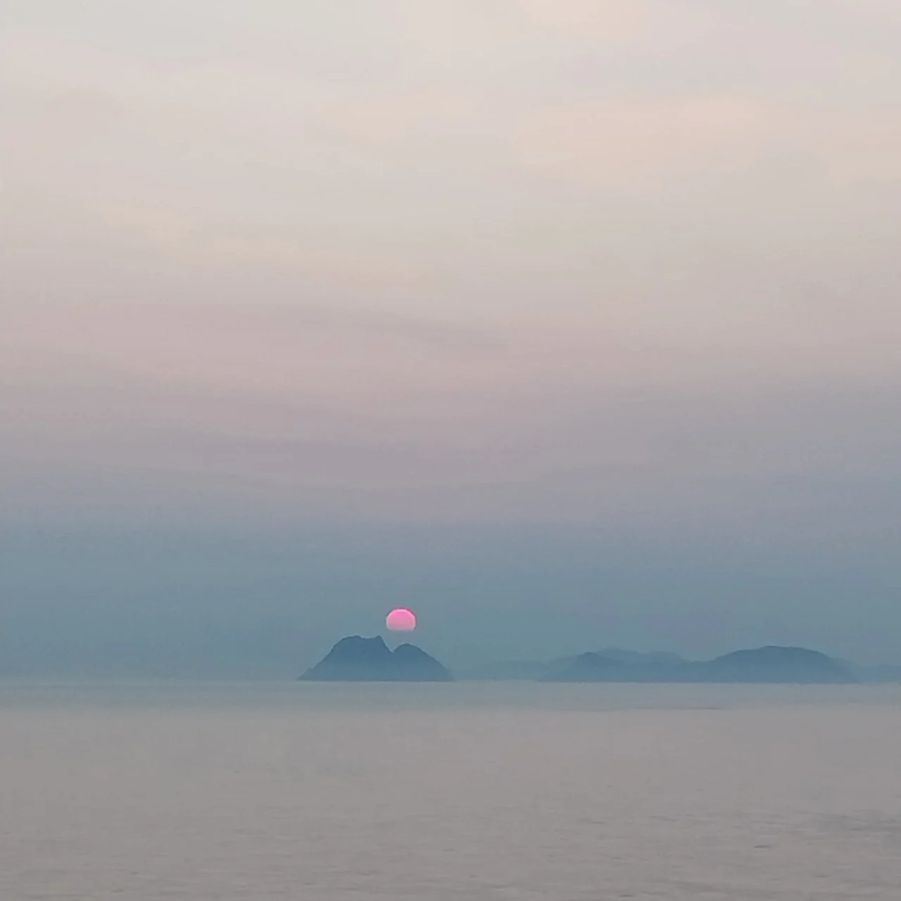 8월 초 제주항에서 여수항으로 가는 남해에서, 해넘이와 낙조
