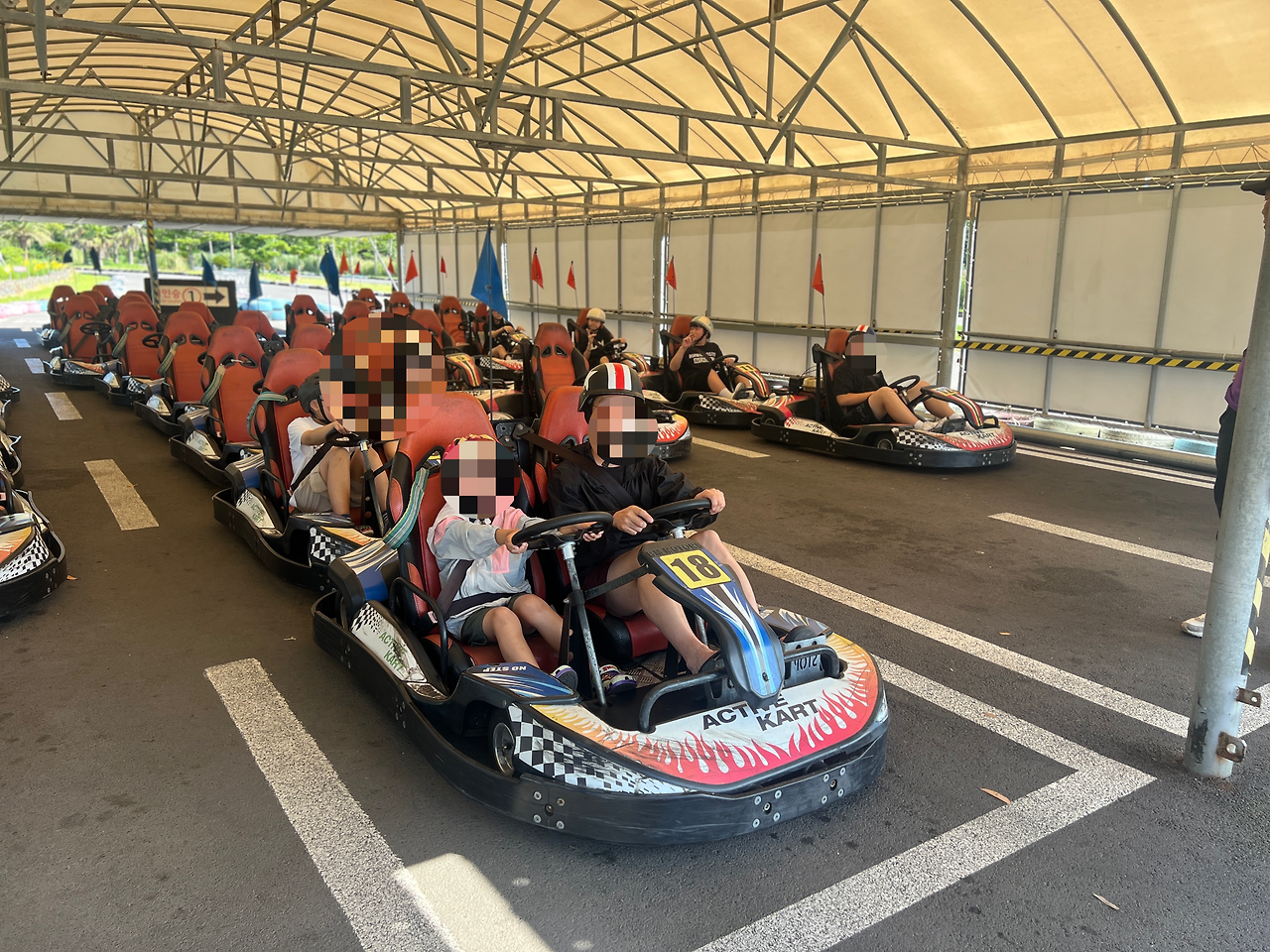 슬슬 배가 고파져 근처 모둠생선구이를 먹고, 초등학생과 함께하는 제주도 여행의 필수코스인 카트를 타러 갔다. 아직 키가 작아 아빠와 둘이 카트를 타게 된 지한이는 자비 없이 내리쬐는 햇빛에도 불구하고 땀을 뻘뻘 흘리면서도 아주 재밌게 탔다. 그러고는 줄 서서 예약해 들어가는 메인 키즈 카페를 뒤에 두고 옆에 작게 만들어놓은 어린이용 키즈 카페에서 또 한 시간을 신나게 놀았다.