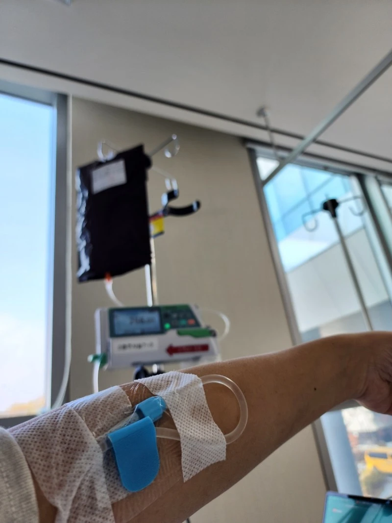 항암제 주사액이 들어가는 동안 혈관통 같은 통증이 느껴지기도 한다. (나도 혈관통처럼 통증을 경험했다.)
