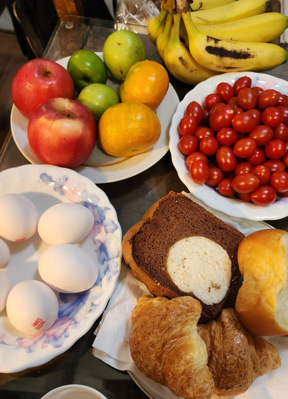 야채들이 있는 음식을 주로 먹었고, 시골시장에서 과일을 사고 편의점에서 군고무마를 사두어 간식으로 먹었다. 녹차는 매일 마실 수 있었다.