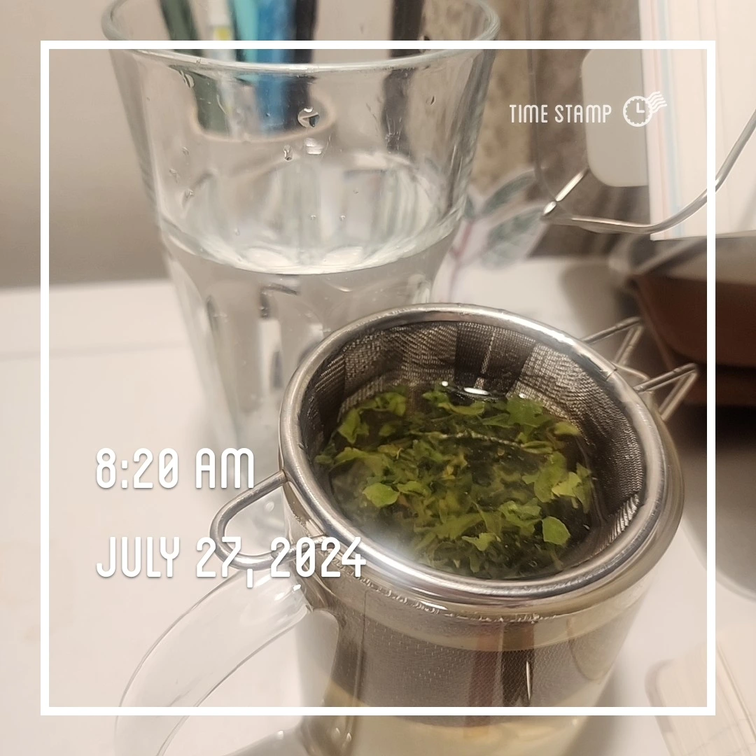 녹차는 국내산 유기농 어린잎 녹차를 마신다. 물은 500ml 정도, 물의 온도는 체온보다 살짝 높은 정도로 마시고 있다. 아주 더운 한여름엔 실온의 물이나 조금 차가운 물에 마시기도 한다.