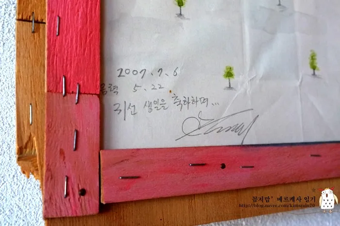 복사지 표장지 뒷면에 그려준 그림이고, 잡에 있던 자투리 나무들과 타카로 만든 액자 이 그림액자를 내가 가장 좋아한다.