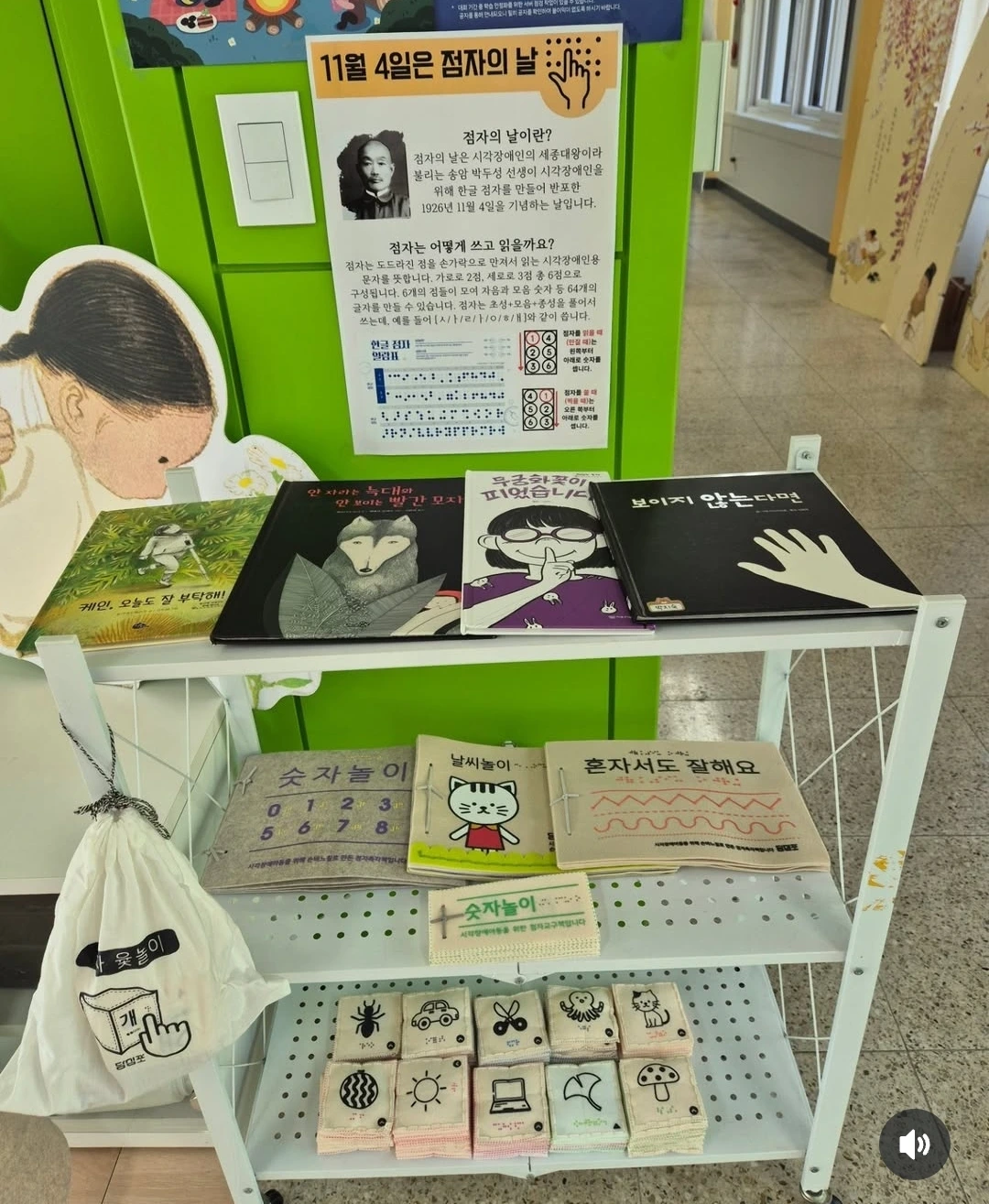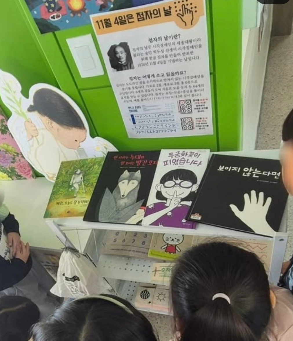 아래의 사진과 글은 초등학교에서 진행한 점자의 날에 진행한 교육내용입니다.