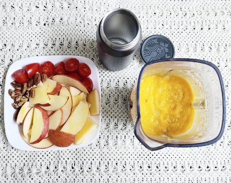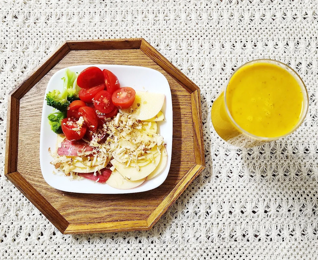 하루에 2번의 식사 중 대부분 점심밥상이다. 공복 15시간을 유지하고 녹차와 물을 마신뒤 10시가 지나서 과일야채식으로 먹는다. 요즘은 당근사과올리브오일주스와 방울토마토와 견과류를 먹고 있다.