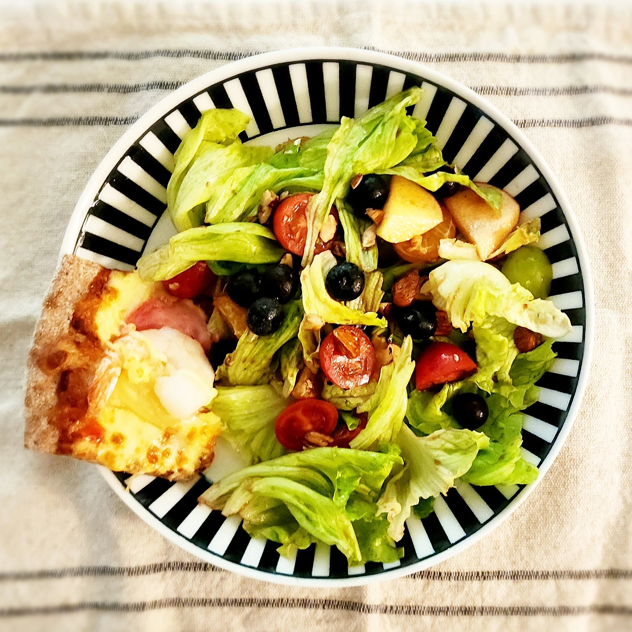 어쩌다 피자가 먹고 싶을 때가 있다. 샐러드를 엄청 많이 만들어서 함께 먹는다. 1년 만에 먹는 피자 한 조각이 맛있었다.