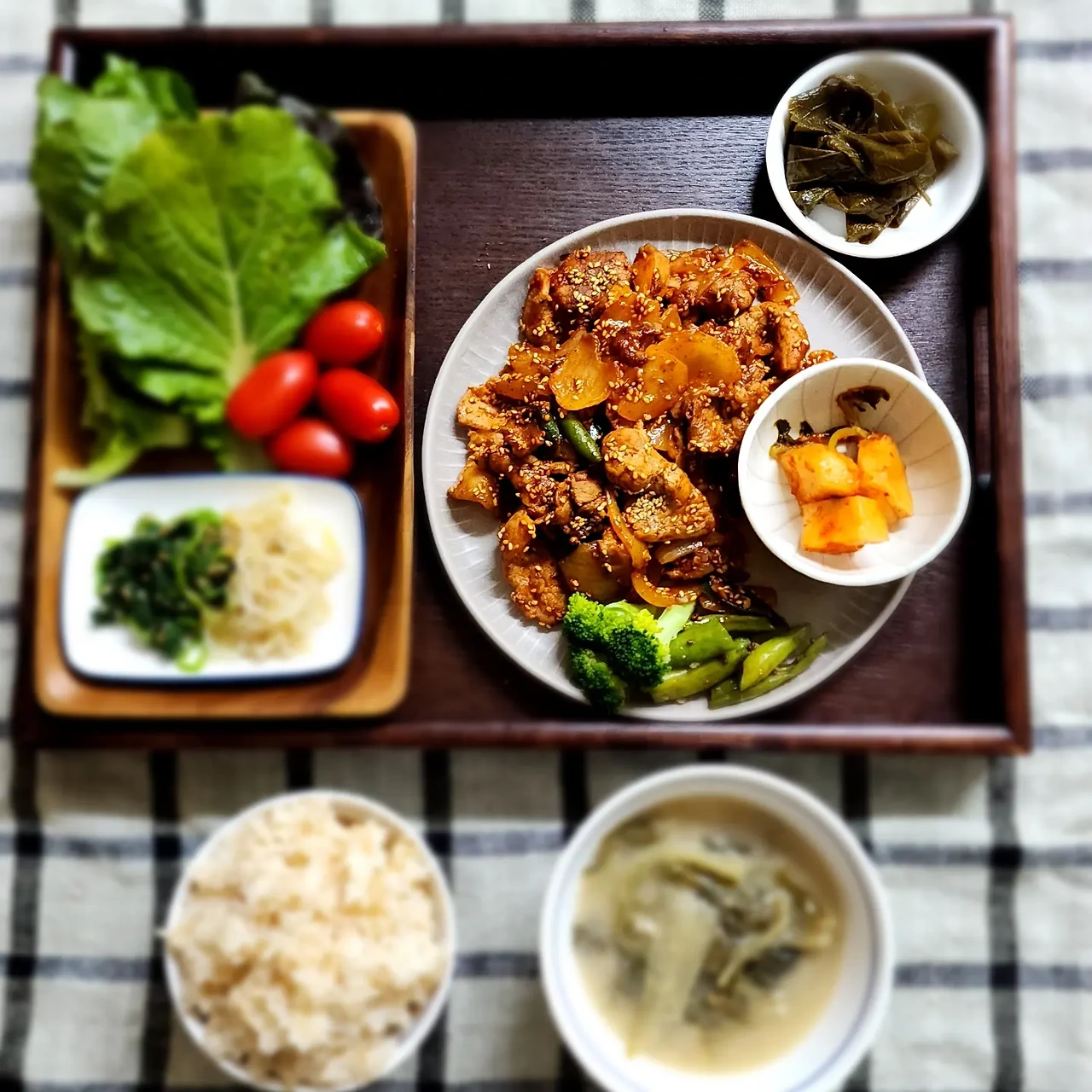 일주일에 한 번은 먹는 야채샤부샤부, 아이들과 남편을 위해 제육볶음을 항상 함께 만든다.