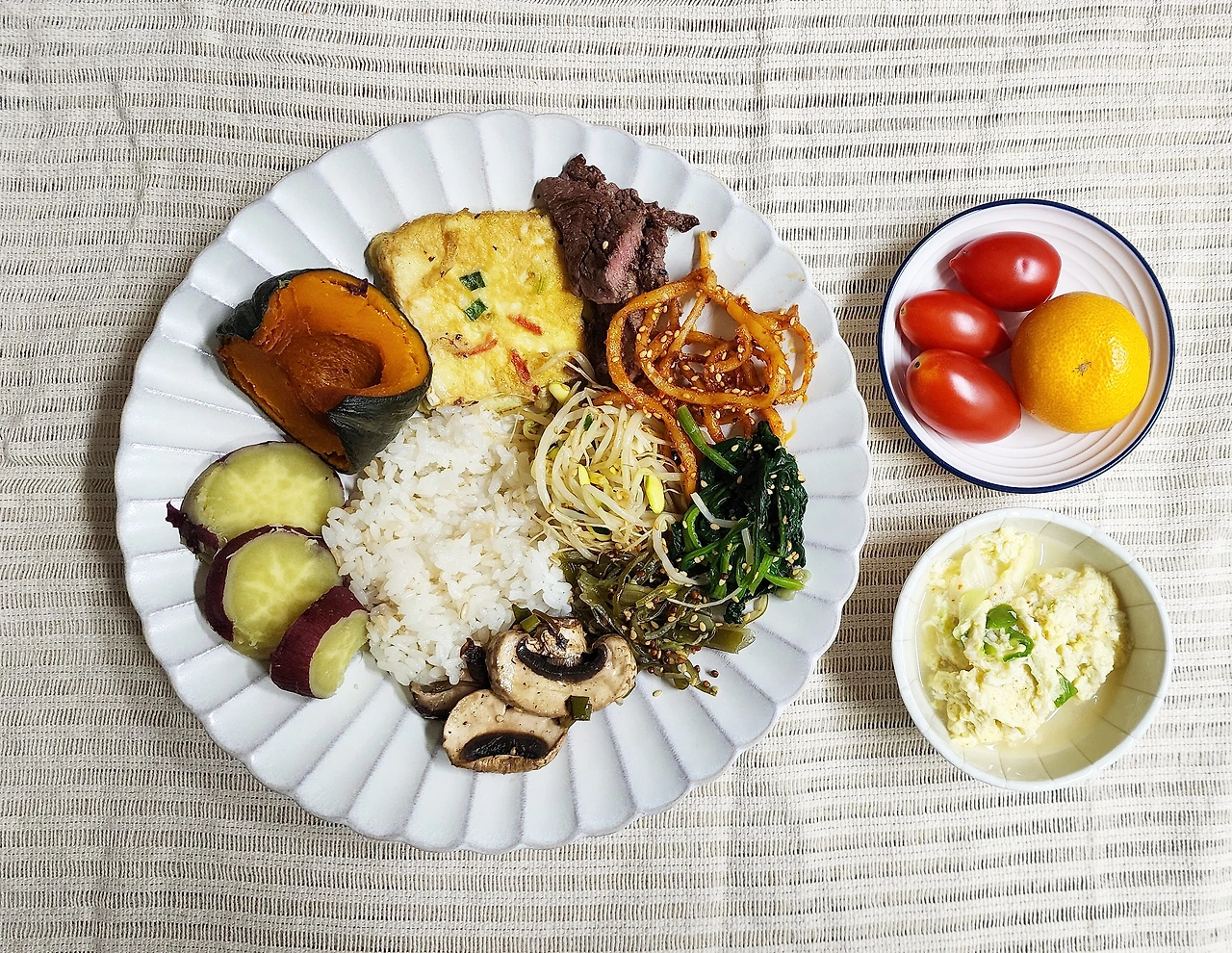 나의 주식은 고구마다. 밥과 먹어야 맛있는 반찬들이 있어 밥은 2~3 스푼정도만 먹는다.