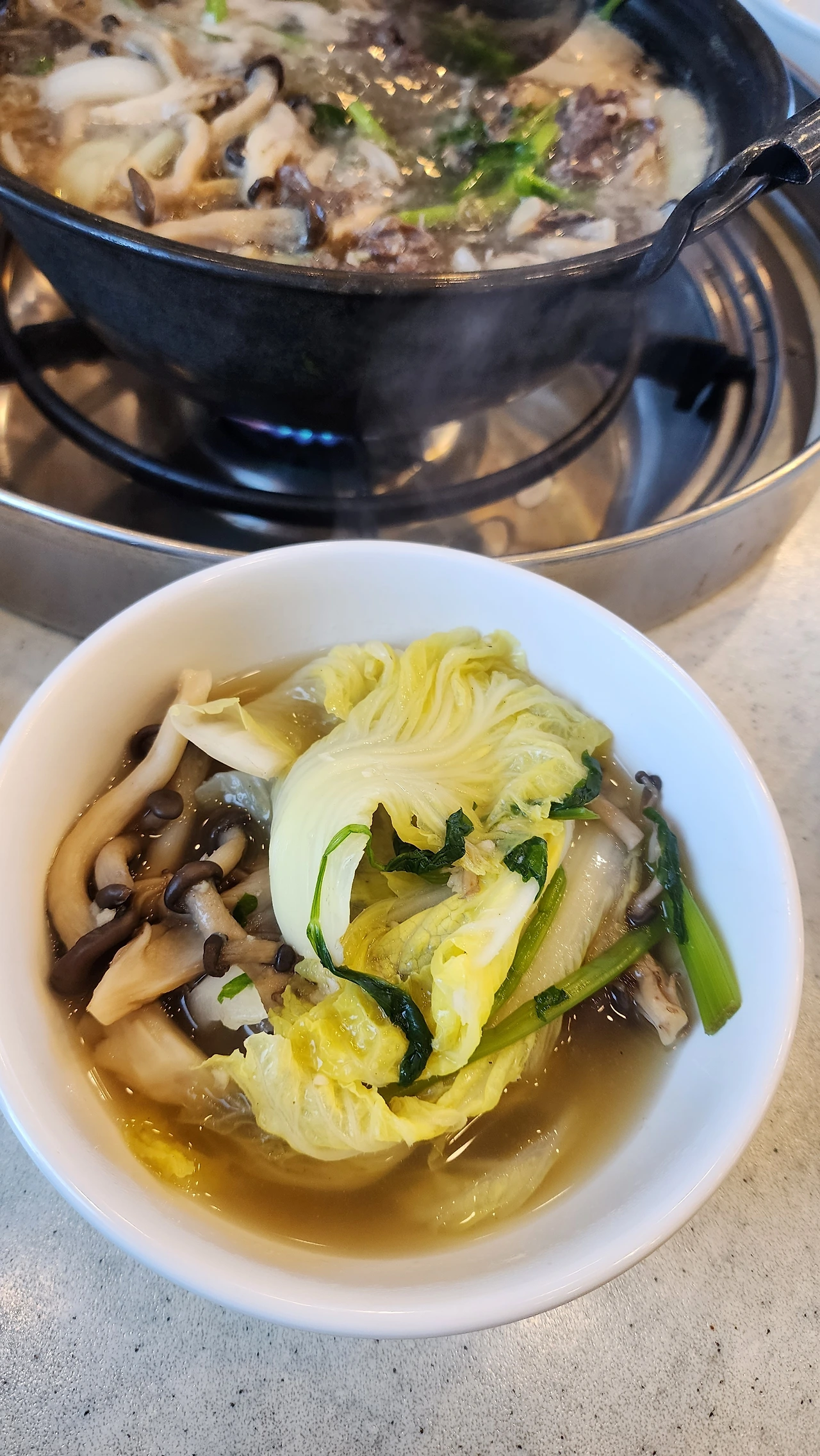 고기를 넣기 전에 야채들을 한가득 내 앞접시에 담았다. 음식은 담백하고 야채가 신선해서 맛있다.
