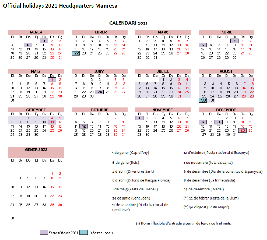 스페인 국경일은 동일하게 쉰다.
