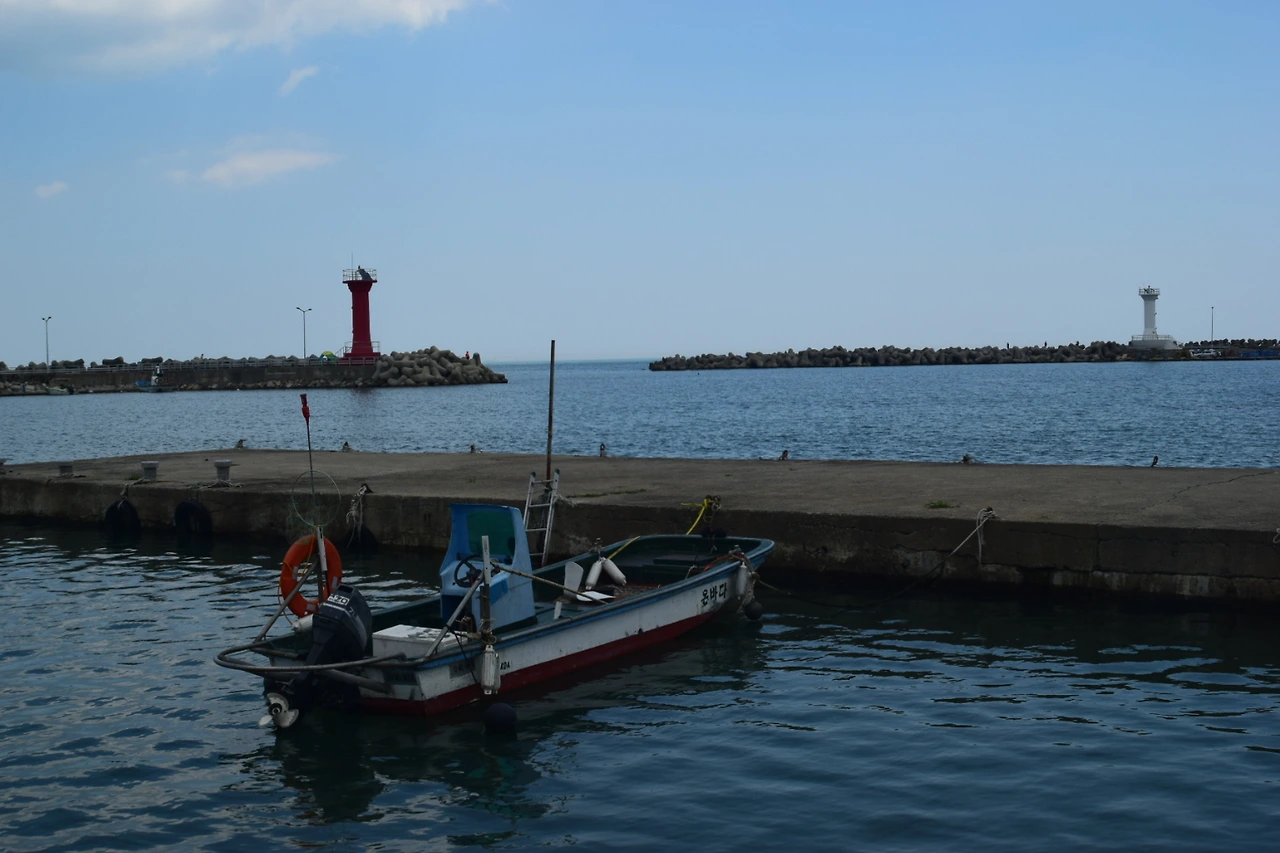 길을 떠나 만난 첫 마을 문동리는 조용한 어촌 마을이다. 마을과 바다 사이 너른 공터에 펼쳐 놓은 그물, 바다로 길게 뻗은 방파제, 그 방파제 끝에 있는 빨간 등대, 방파제에 설치된 하역작업용 소형 크레인, 여기저기 정박해 있는 선박들은, 인적이 드문 이 어촌 마을이 살아있다는 증거이다.