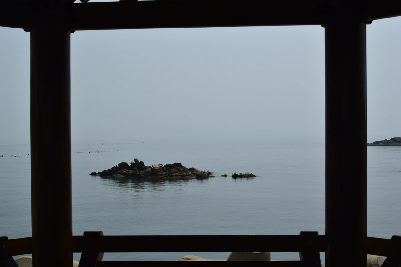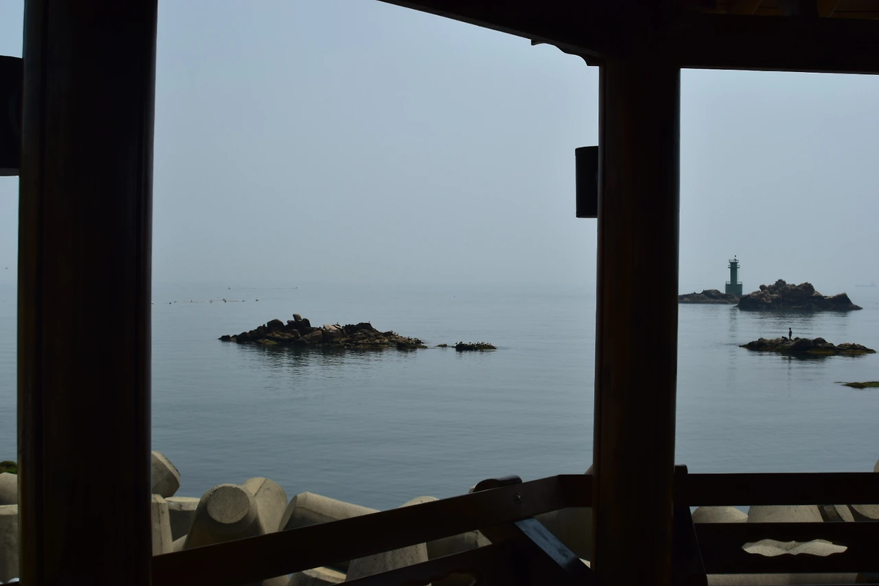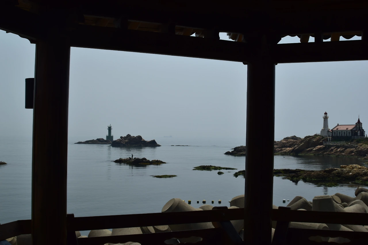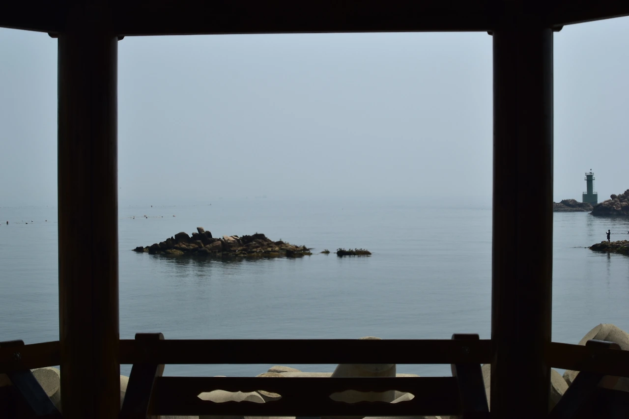 황학대 옆에 황학정이라는 정자가 있다. 매력적인 정자는 아니었다. 하지만 이희봉 님의 "한국 건축의 모든 것 - 죽서루"에 나오는 '한국의 누정은 밖에서 바라보는 건축물 이상의 의미가 있다. 누정의 존재 의미는 누정의 안 공간에서 바깥 풍경을 바라보는 데 있다.'는 말이 생각났다. 그래서 줄줄 흐르는 땀도 식힐 겸 피곤한 다리도 쉬어줄 겸 신발을 벗고 황학정을 올랐다. 황학정의 계자 난간에 기대어 앉아 죽성 앞바다를 바라보면서 어느 듯 나는 400여 년 전 윤선도처럼 그 절경에 빠져들고 있었다.