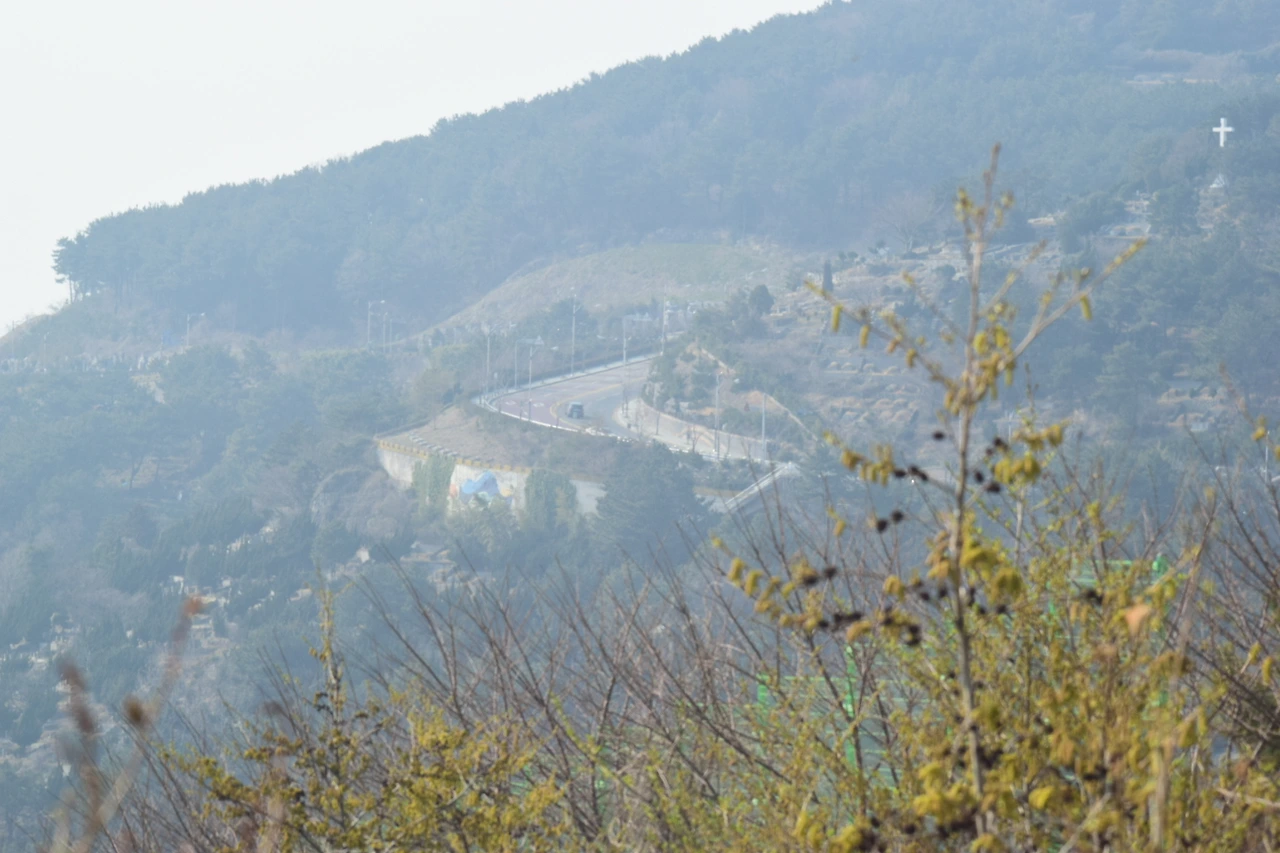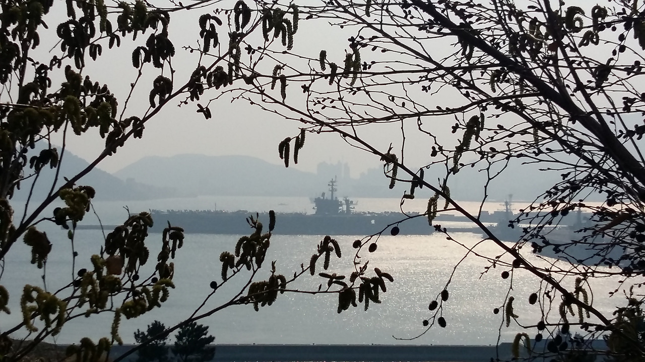 오륙도의 풍광을 뒤로하고 다시 앞으로 걷는다. 백운포 해군기지가 눈 앞에 있다. 미 해군의 항공모함 칼빈슨호가 정박해 있다. 그 위로는 신선대로 가는 길이 휘감아 돌고 있다. 내가 걸을 길이다. 저 길 아래 위로는 천주교 묘지.