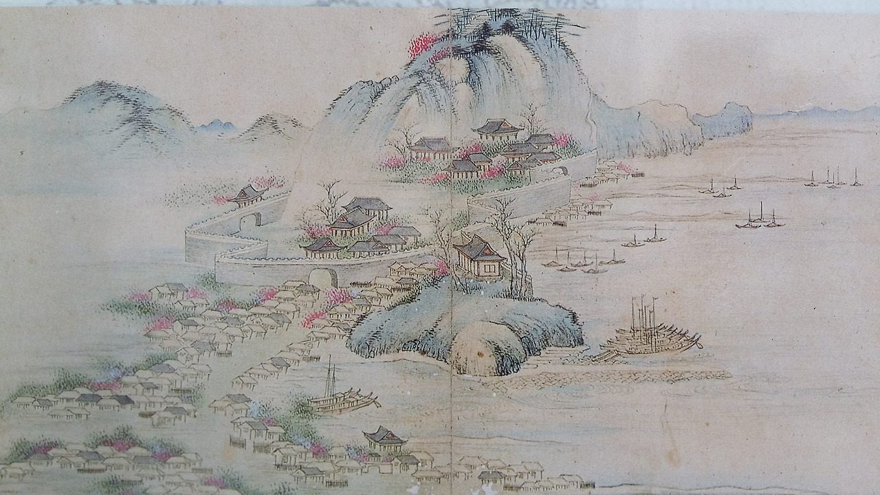 위 그림을 보면 바다 위 언덕에 자리 잡은 것이 영가대, 그 뒤에 있는 성이 자성, 가마를 닮은 증산 아래에 있는 성이 부산진성인 모성인 듯하다. 현재는 바다를 매립하여 이전의 모습과는 상당히 다르다.