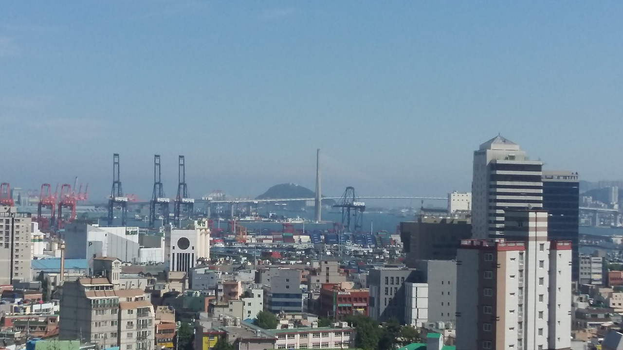 통유리 밖으로 부산항을 내려다보니,