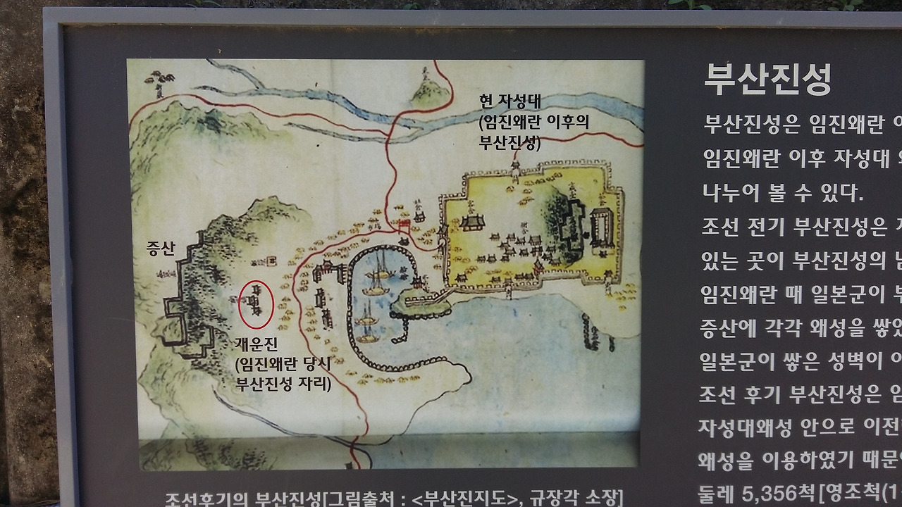 증산은 원래 부산진성이 있던 곳이다. 임진왜란 때 정발 장군이 진성을 지키다가 장렬히 산화한 곳이다. 이 곳이 부산진 母城이었고, 현재 자성대가 있는 곳이 子城이었다.