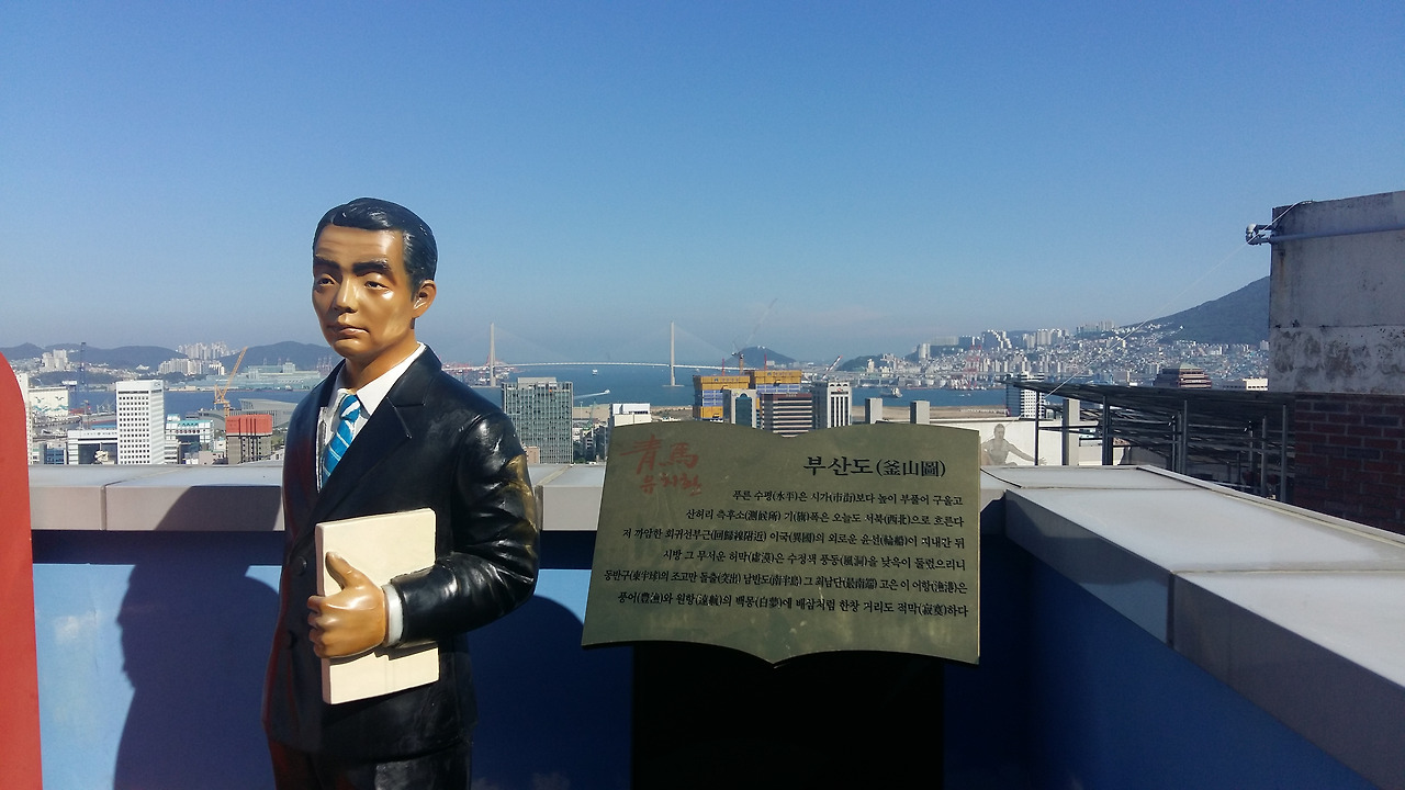 청마 유치환 선생이 마지막 생을 보낸 곳이 수정동이었나 보다. 유치환 선생은 부산 경남여고와 부산남여상(현 부산영상예술고등학교)에서 교장으로 교편을 잡으시다 퇴근길에 교통사고로 사망하였다. 유치환 선생을 기리기 위해 부산항이 훤히 내려다 보이는 이 곳에 유치환 우체통을 만들었다.