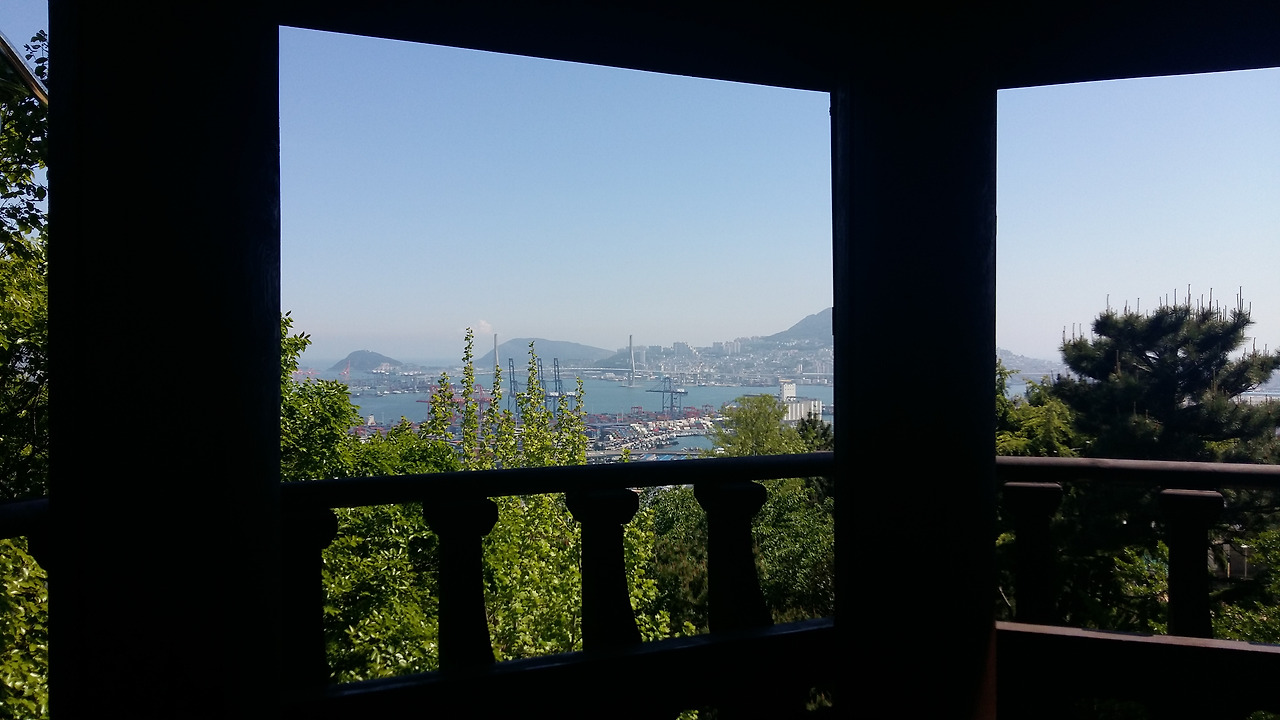 유치환 우체통이 서 있는 이곳에서 내려다본 부산항,