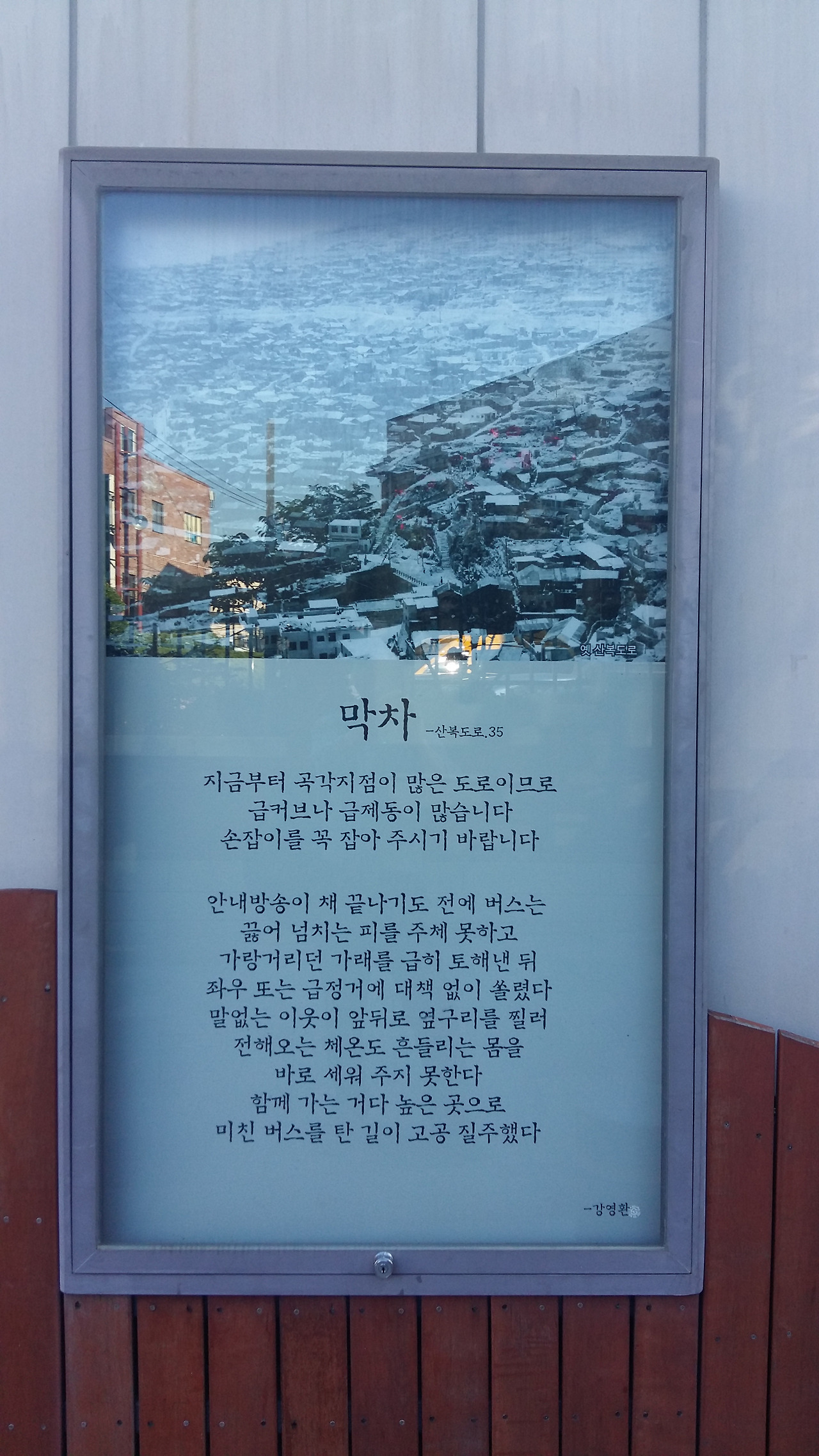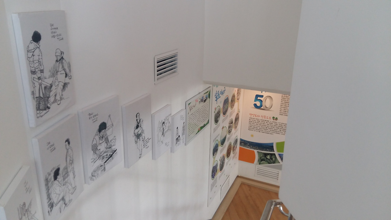 이바구길 입구에는 산복도로에 얽힌 민초들의 이야기가 그림과 시가 되어 벽에 전시되어 있다.