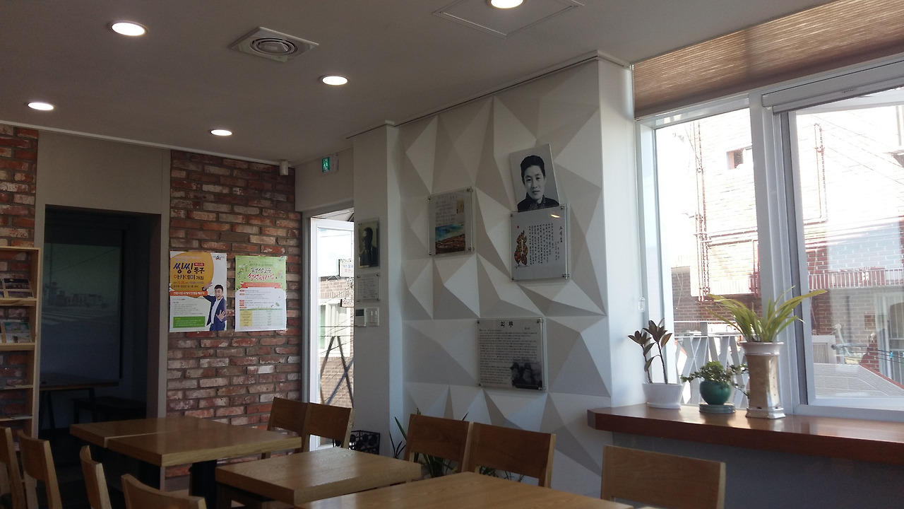 사실 유치환 우체통 아래층에 있는 차집에서 시원한 아메리카노를 한 잔으로 더위를 식히면서