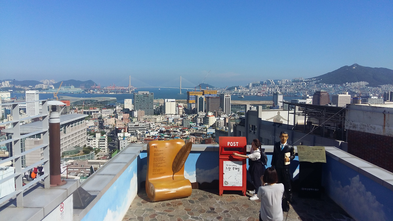 자기 자신에게 편지를 써서 이 우체통에 넣으면 1년 후 자신에게 배달된다고 하는데, 난 미처 편지를 쓸 생각은 못하고 아래층 시인의 찻집에서 시원한 아메리카노로 더위를 식히며 통유리 너머로 부산항 대교 앞바다만 바라보고 있었더랬다.