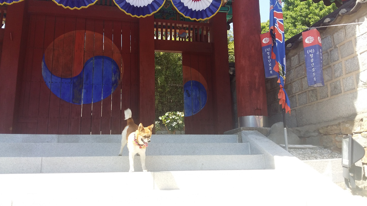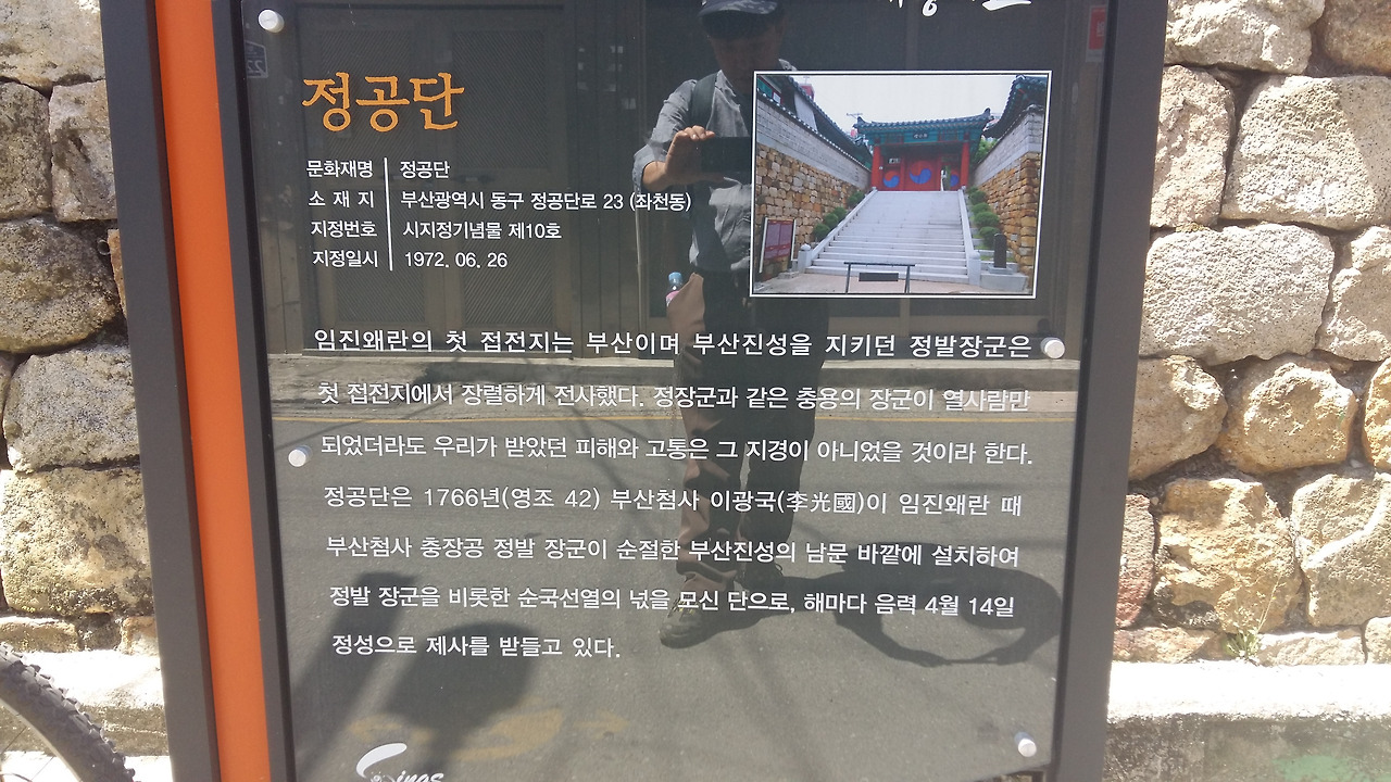 진시장 출발하여 10여분 되었을까, 정공단이다. 임진왜란 당시 목숨을 걸고 부산진성을 지켰던 정발장군을 기리는 곳이다. 정공단 정문 앞 계단에 엎드려 있는 멍멍이가 반갑게 맞이한다. 그리고는 마치 안내인이라도 되는 듯이 정공단 대문을 들어서는 길에 따라 들어오며 꼬리를 흔든다. 혹 정공단에서 멍멍이가 가까이 다가와도 무서워하지 마시라.