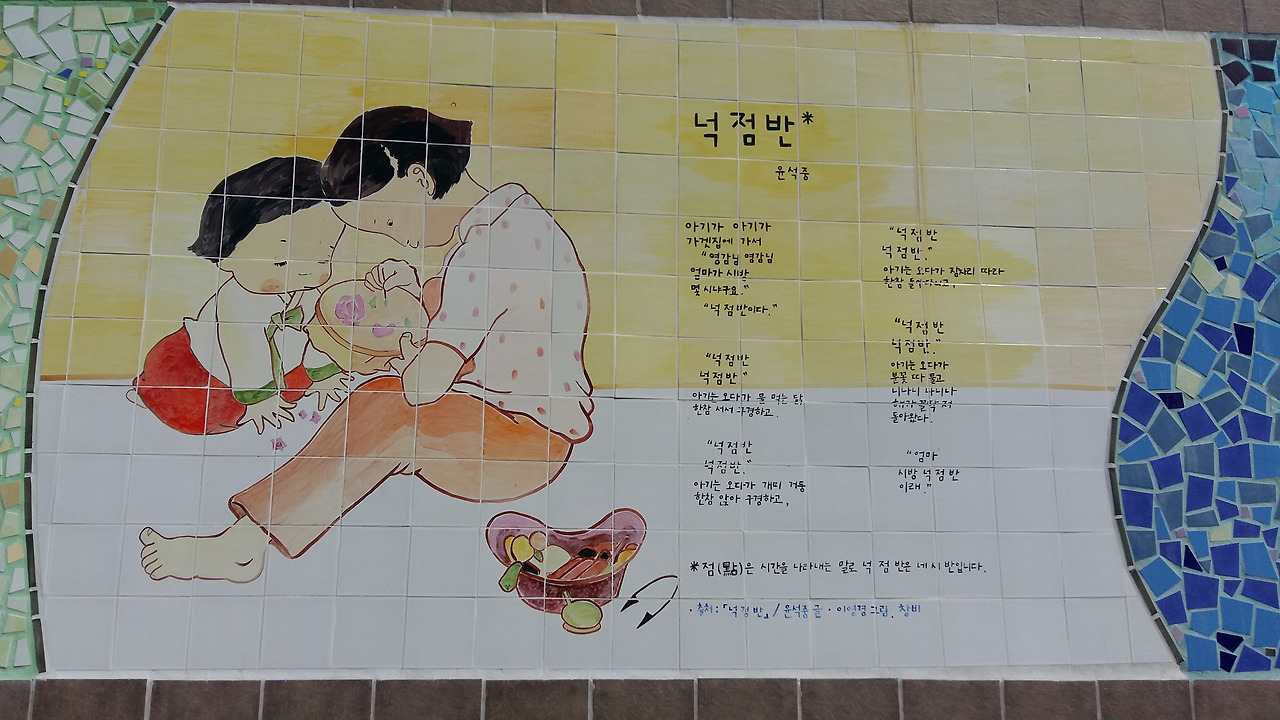 증산공원을 내려와 산복도로로 향하는 길 벽에 재미있는 동시가 그려져 있었다.