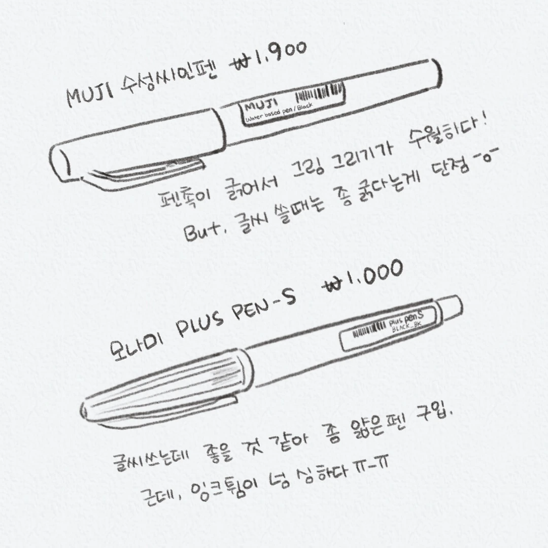 일단, 무지 펜은 잉크도 안 튀고 무난맨으로 쓰기 좋음!
