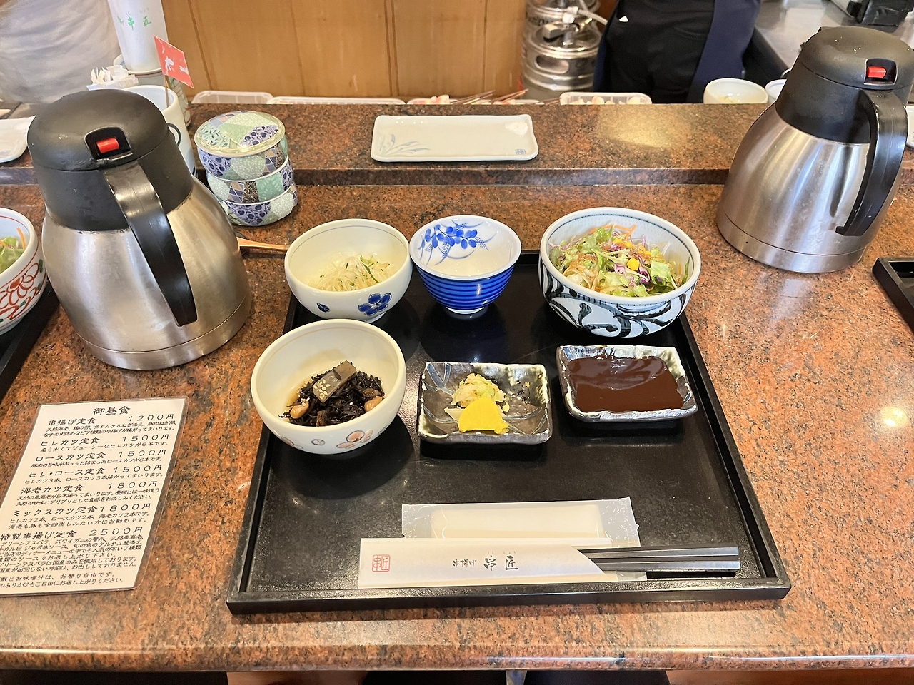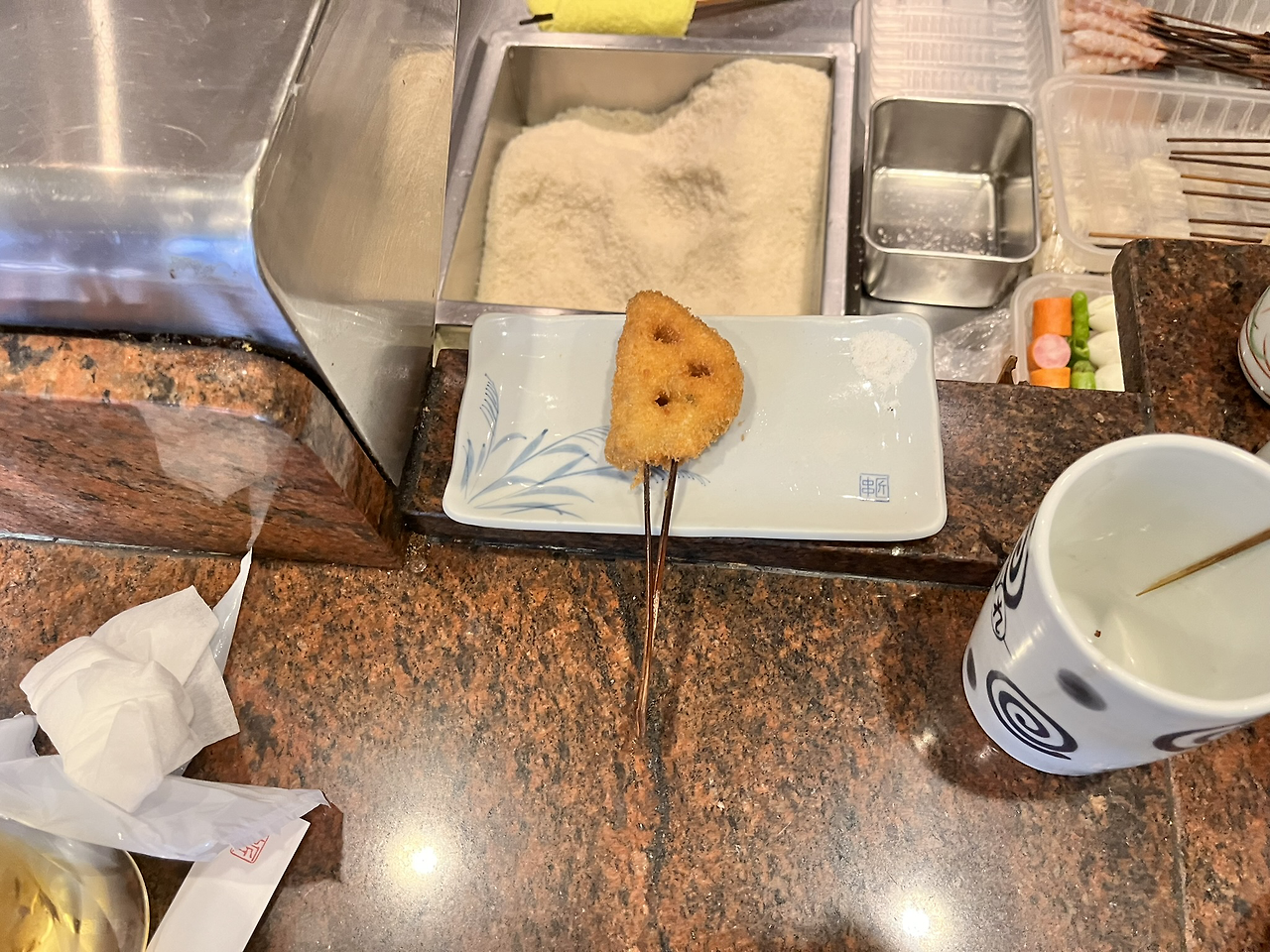 바로바로 튀겨주는 꼬치튀김답게 카운터석만 있는 곳이었다.