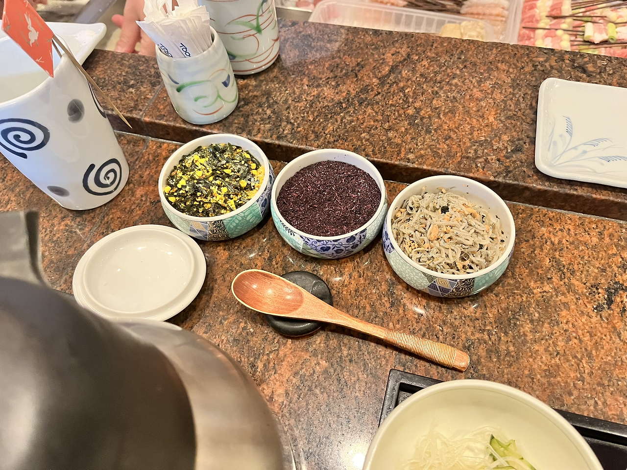 밥에 3가지 종류의 후리가케를 뿌리면 조금씩 먹고 있으면