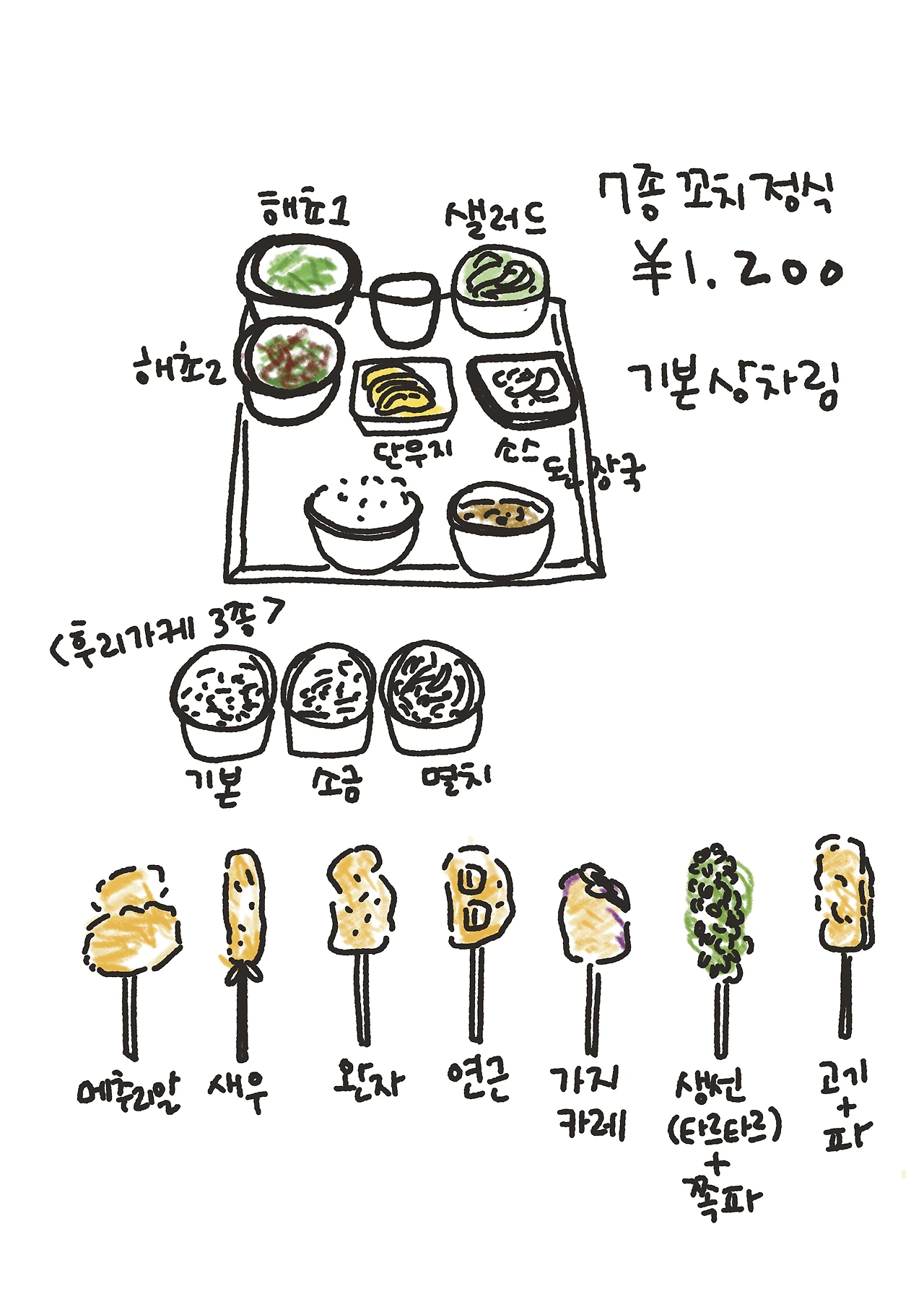 7가지의 꼬치가 나오는 점심정식을 주문했다.