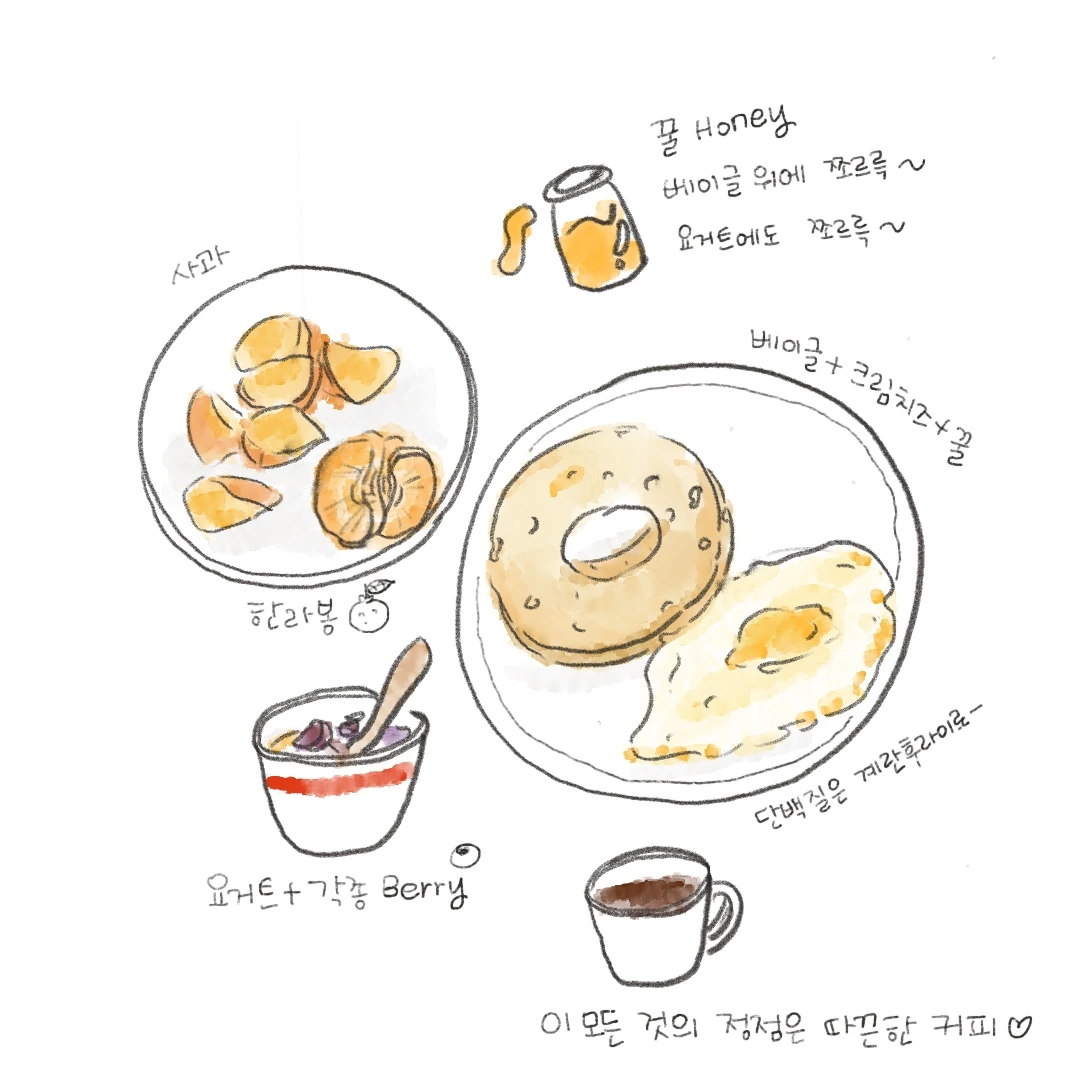 유튜브를 볼 때도 있고 때론 메모를, 때론 그림을, 종종 일기를 적으며 먹다 보면