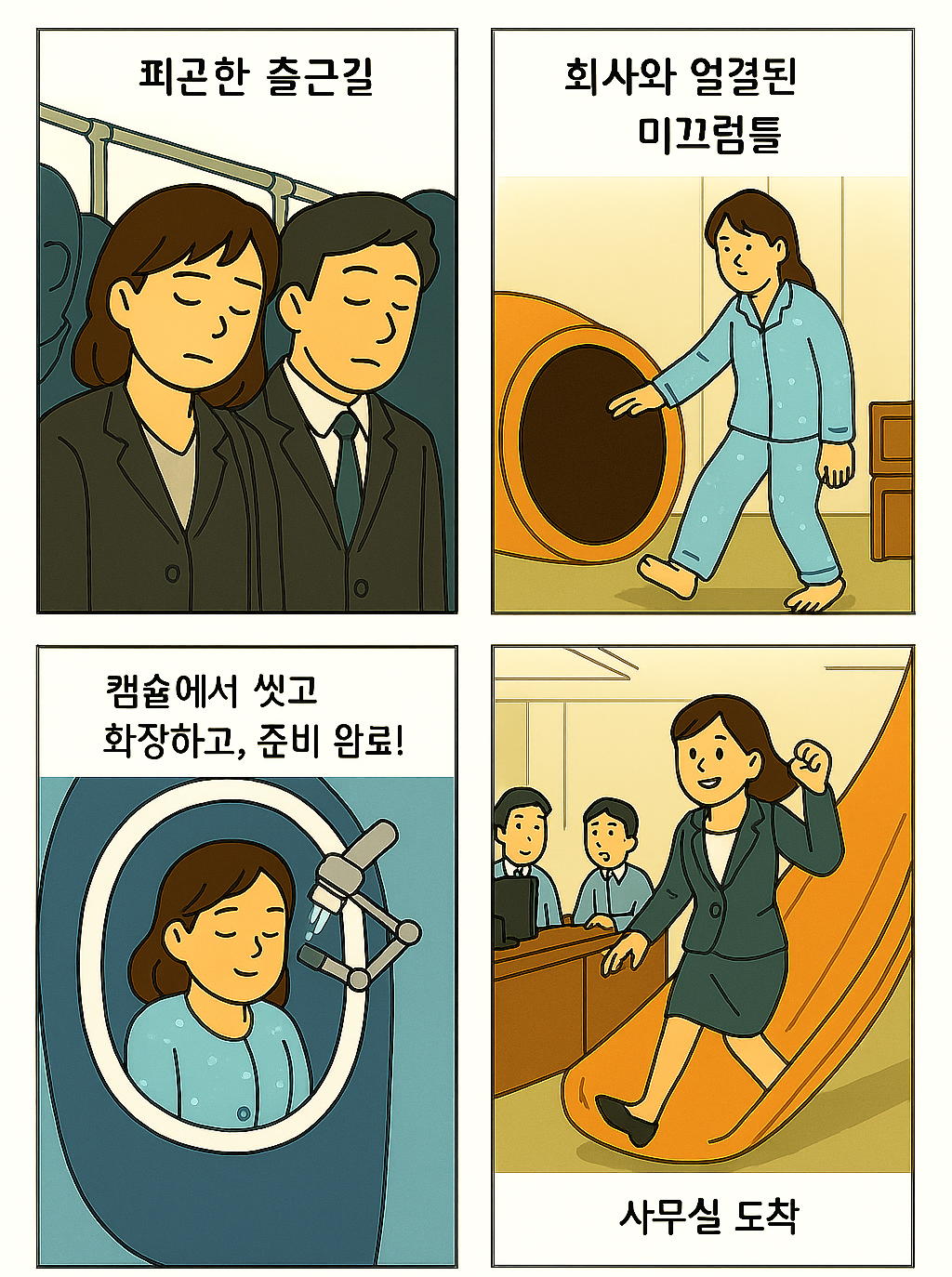 캡슐형 출퇴근 미끄럼틀이 있다면 직장생활이 좀 더 윤택해질 것 같다.
