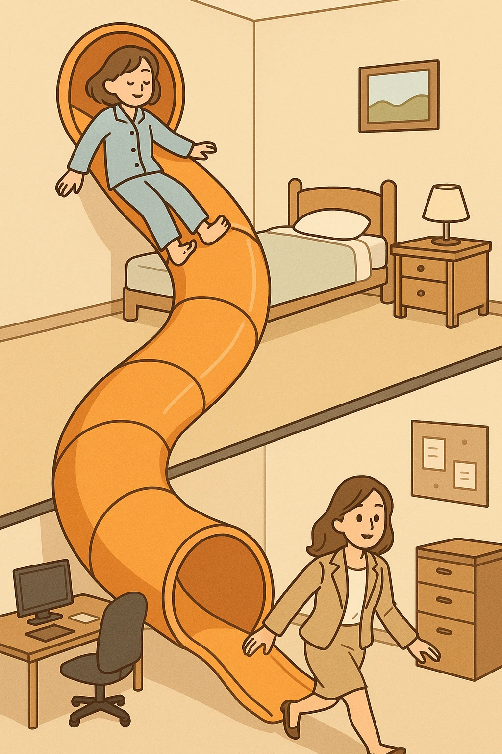 #직장인 일기#출퇴근#아침잠#출근미끄럼틀#방과 회사 연결#지각방지#어른상상