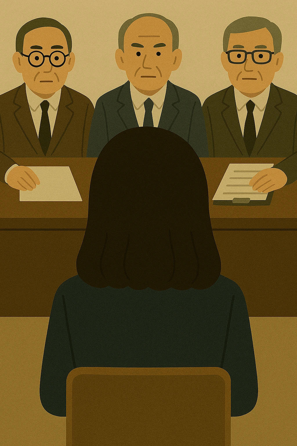 임원들이 모인 대회의실, 나는 성큼성큼 걸어가 자리에 앉았다. 면접관들의 눈을 마주치며 자신감 있는 태도로 대답했다.