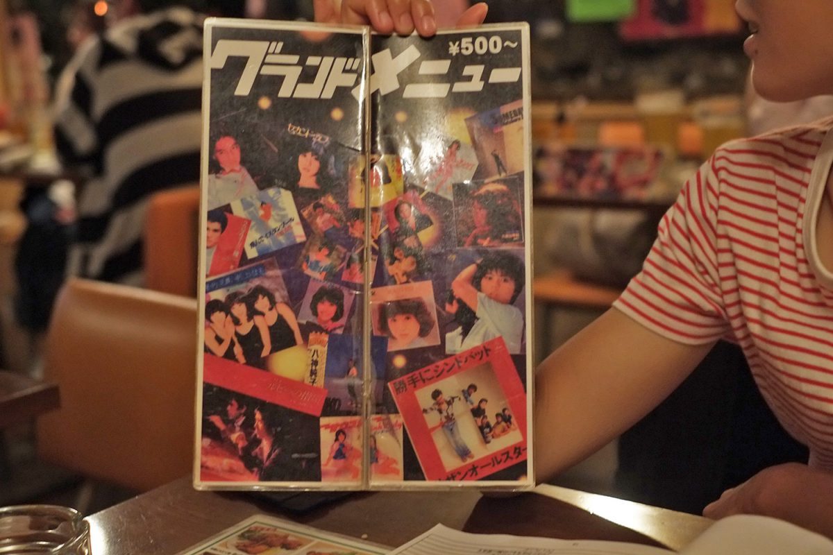 각 테이블에는 마치 노래방 책자처럼 제목 순서대로 빼곡히 옛날 일본 곡들이 적혀 있고 테이블엔 연필과 리퀘스트 페이퍼가 놓여있다.