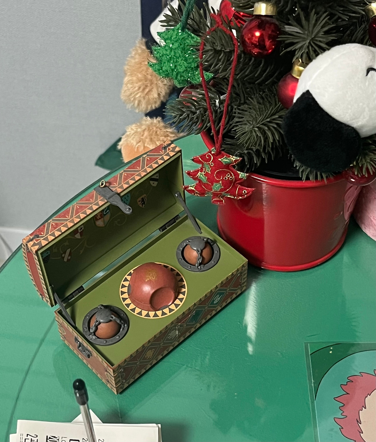 다음으로 구매한 굿즈는 <퀴디치 공 홀마크>이다. 굿즈 덕후라면 알겠지만, ‘크리스마스 홀마크’라는 것이 있다. 디즈니부터 해리포터까지 정말 다양한 굿즈들이 홀마크로 출시된다. (홀마크의 존재는 모르는 편이 나을 수도 있다. 지갑을 지키려면..) 이 홀마크는 개인적으로 너무 리얼해서, 구매 후 ‘정말 잘 샀다’고 생각한 아이템이다. 옆 버튼을 누르면 공이 덜덜덜 움직이며, 마치 영화 속 한 장면처럼 튀어나갈 것 같은 효과가 연출된다.
