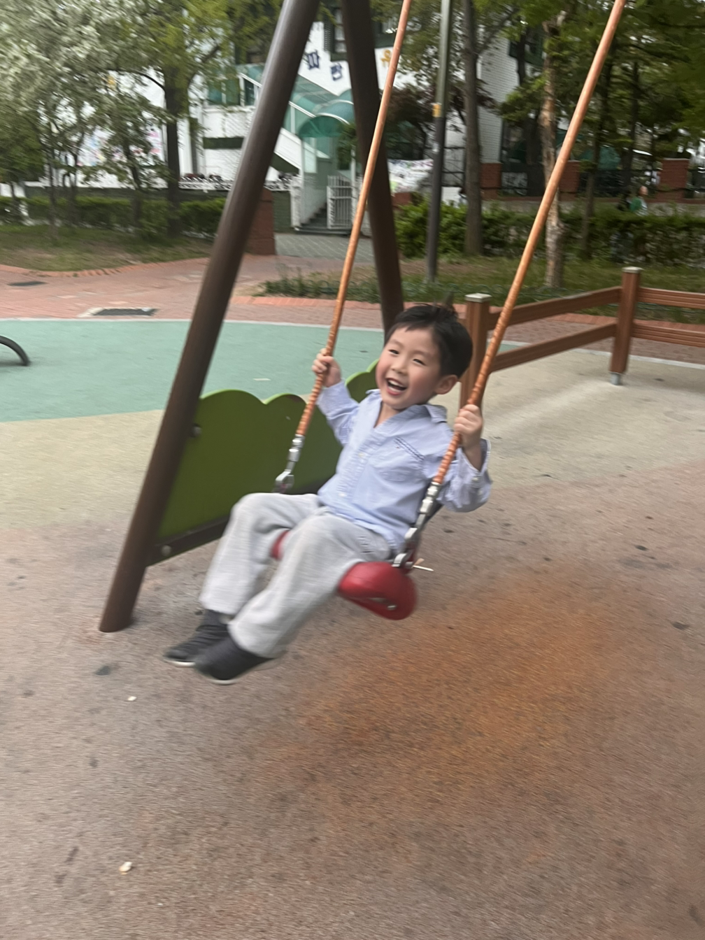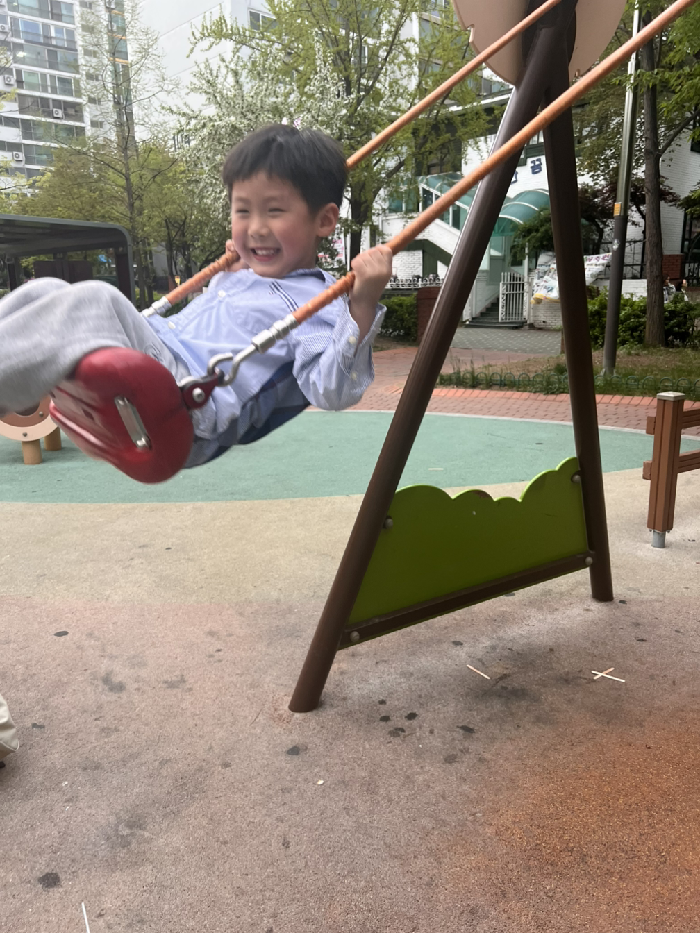 오늘도 아이는 그네를 타며 하늘을 향해 날았다. 두 팔을 꼭 쥐고 있는 줄에 온 세상이 매달린 듯, 그 작은 기쁨 하나가 나에게도 전해졌다.