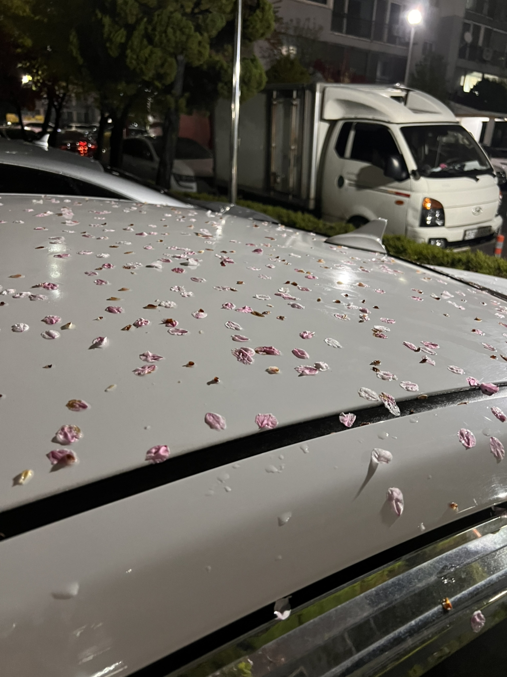 주말 사이에 벚꽃으로 뒤덮인 내 자동차 ㅎㅎ