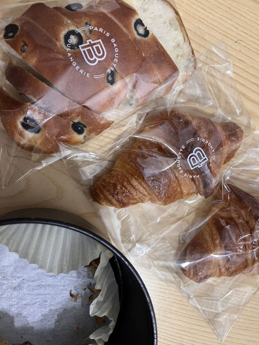 집으로 돌아와 블랙올리브치아바타, 크로와상, 그리고 식빵을 꺼냈다. 오븐에 넣고 기다리는 동안 퍼지는 냄새는 하루 중 가장 부드러운 음악 같았다.