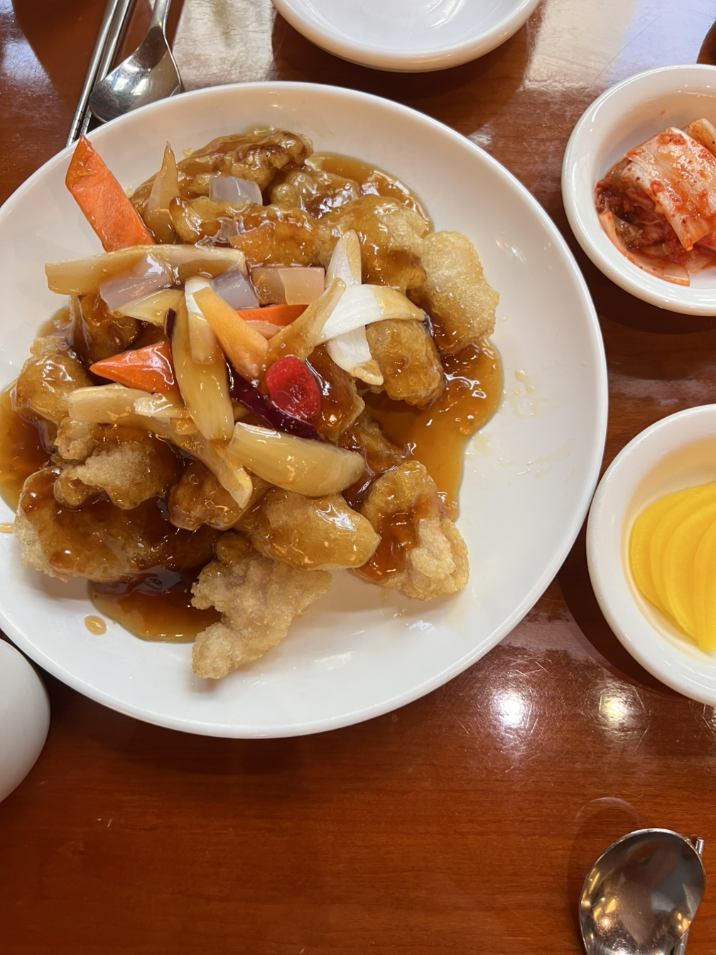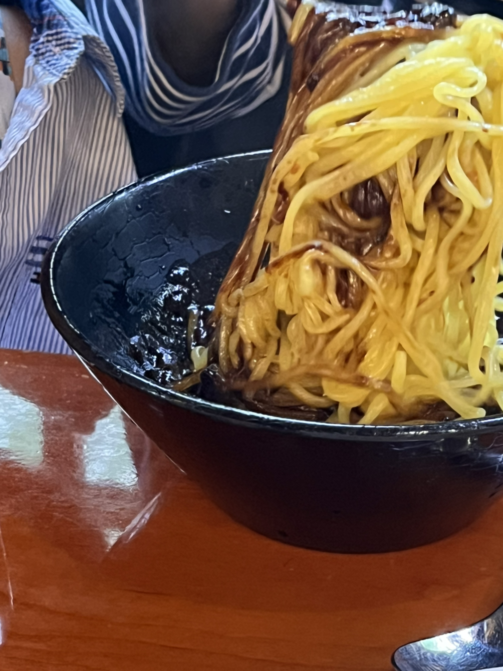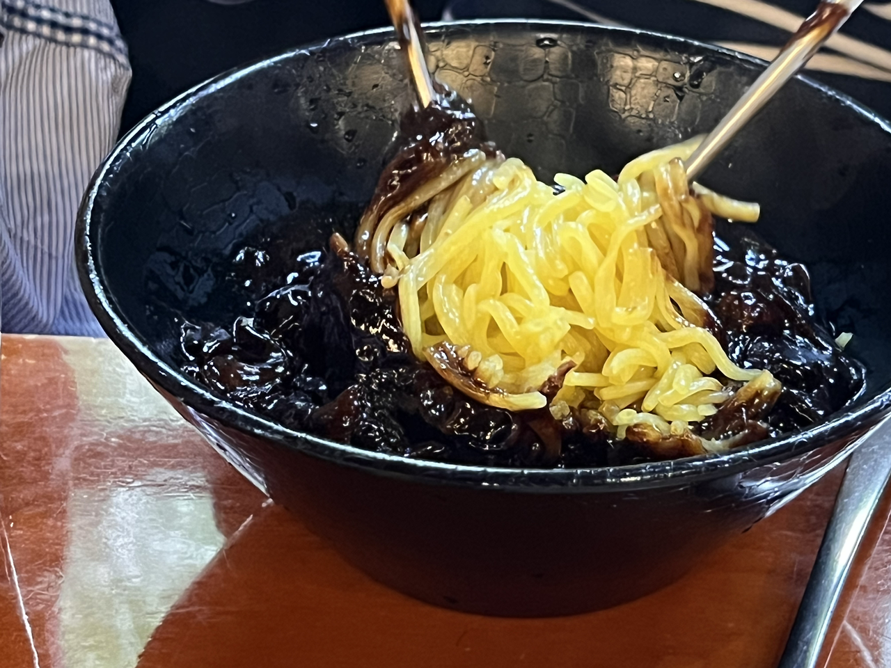 한참을 놀다 배가 고파 근처 분식집에 들어갔다. 익숙한 향이 코끝을 간질였고, 따뜻한 짜장면 한 그릇이 테이블에 놓였다. 검은 춘장이 노랗게 빛나는 면에 얹힌 그 순간, 나는 이미 절반쯤 행복해진 상태였다.