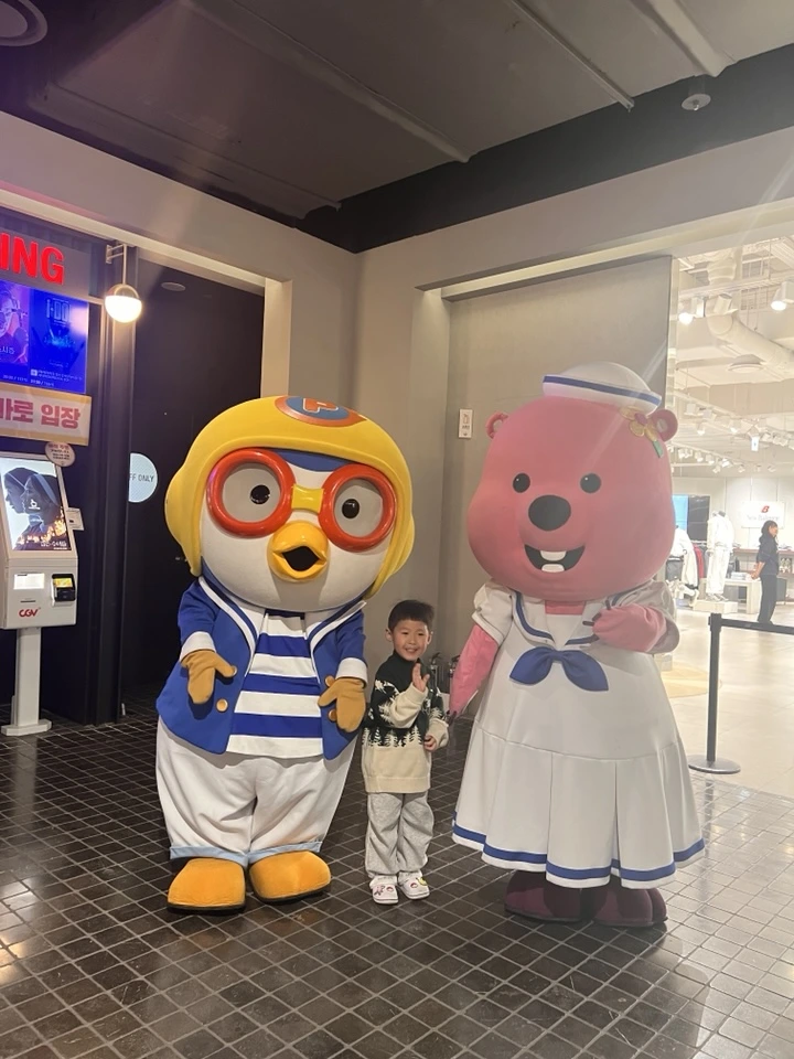 아이의 눈은 커다래졌고, 입은 벌어진 채 움직이지 않았다. 매일 아침 스크린 너머에서만 만나던 존재가 눈앞에 등장하자, 그 놀라움과 벅참이 온몸으로 튀어나왔다.