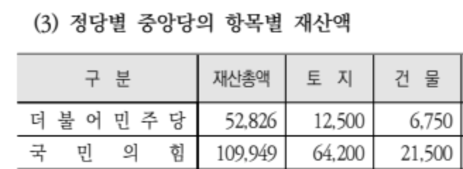 2023년도 기준 국민의 힘 중앙당의 재산이다. 지방당을 합치면 더 많아진다.