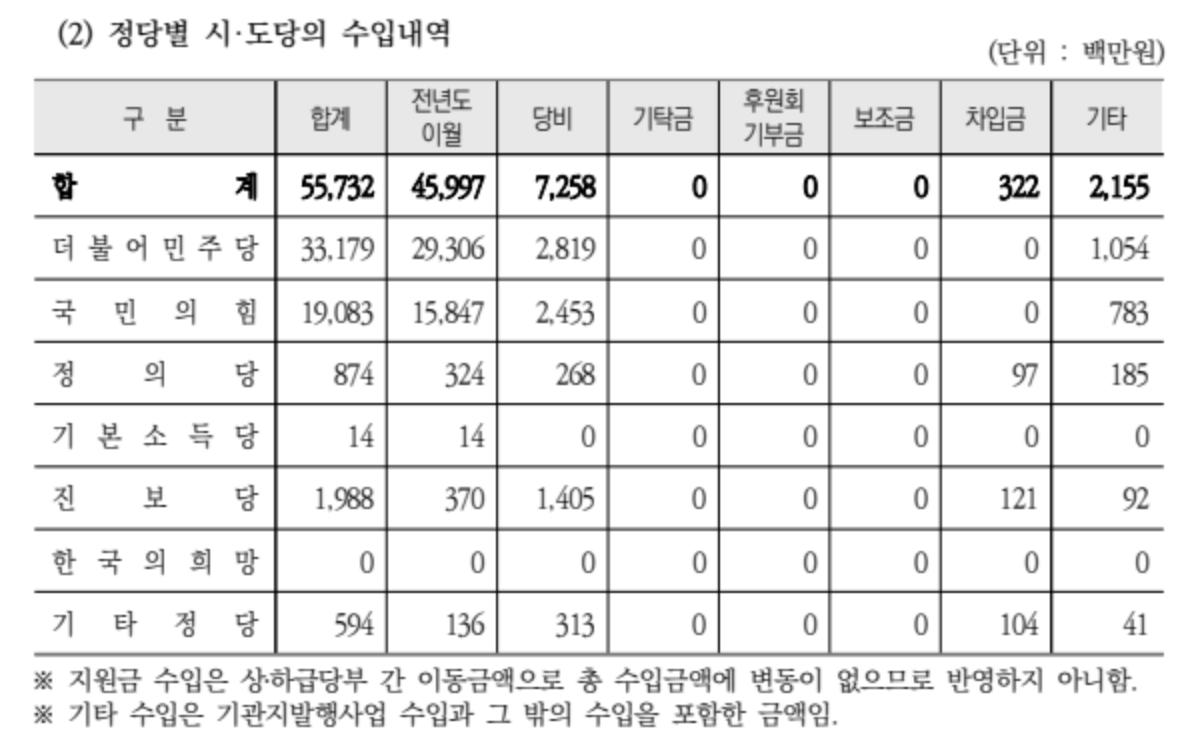 해당자료는 2024년 11월 중앙선거관리위원회에 올라온 "2023년도 정당의 활동개황 및 회계보고"에서 발췌했다.