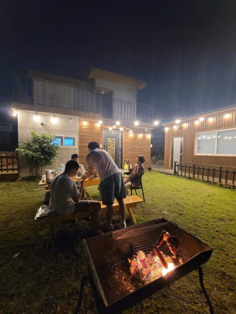 이번에는 돈마호크에 목살에 소시지도 굽고 라면도 끓이고, 맥주에 커피까지.